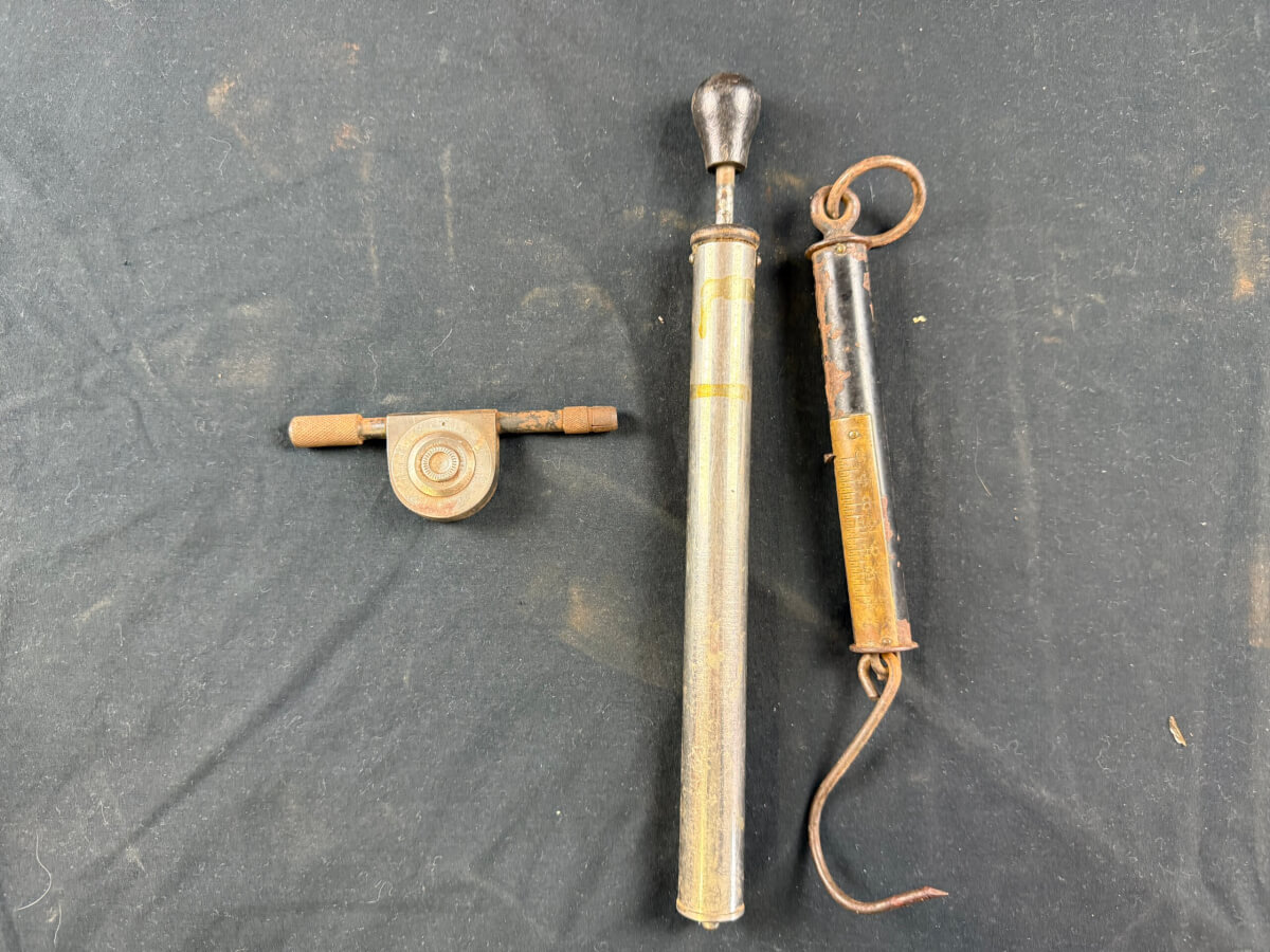 35 3 Pieces: Brass Hanging Scale, Iron Hanging Scale & Speed Indicator & Pump