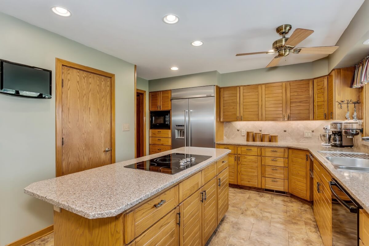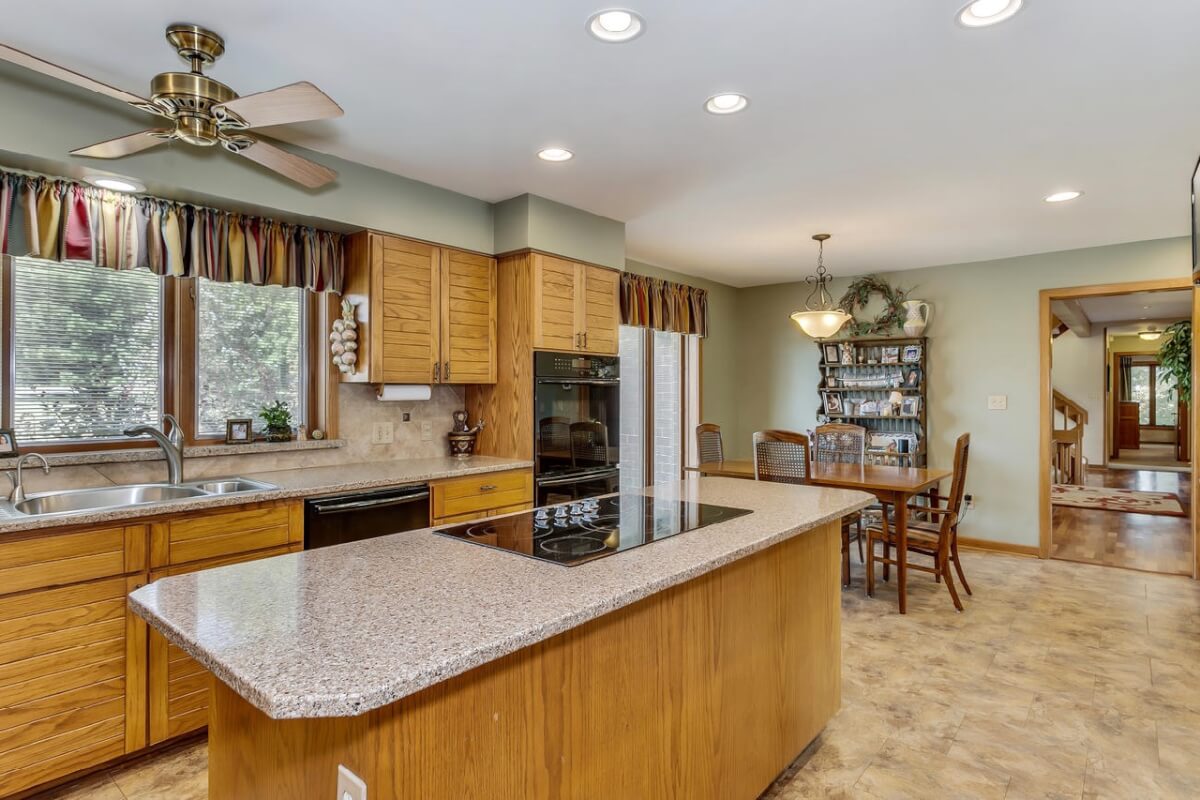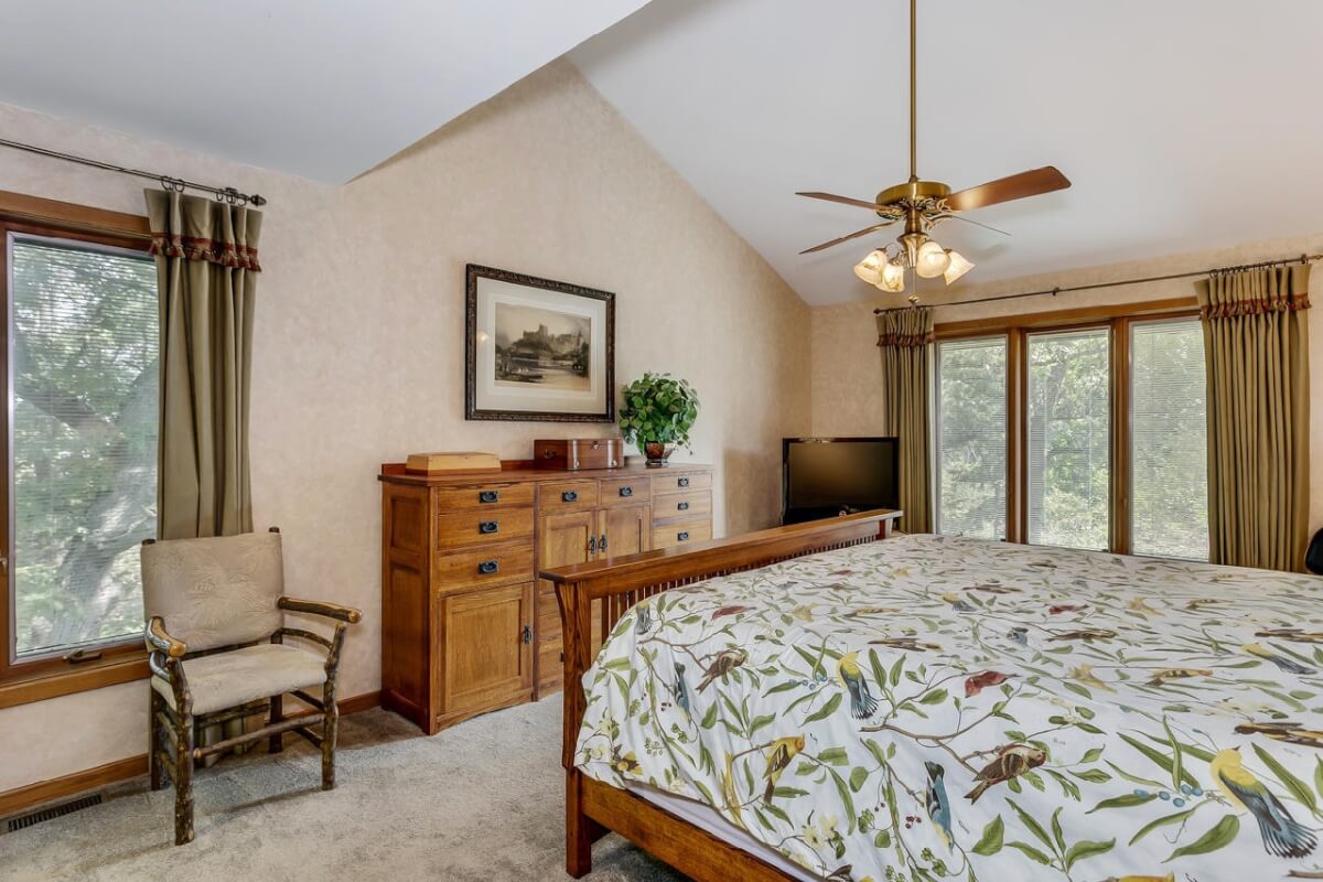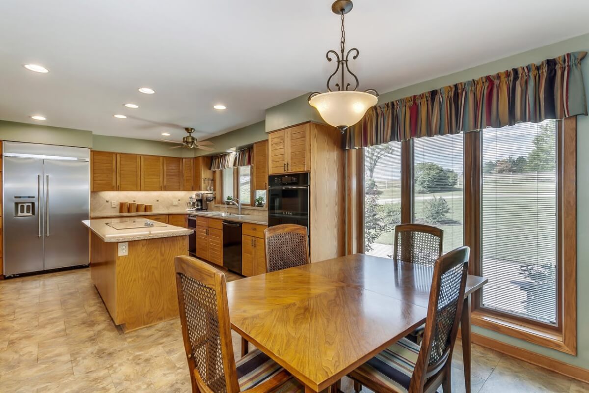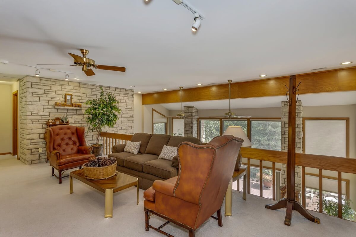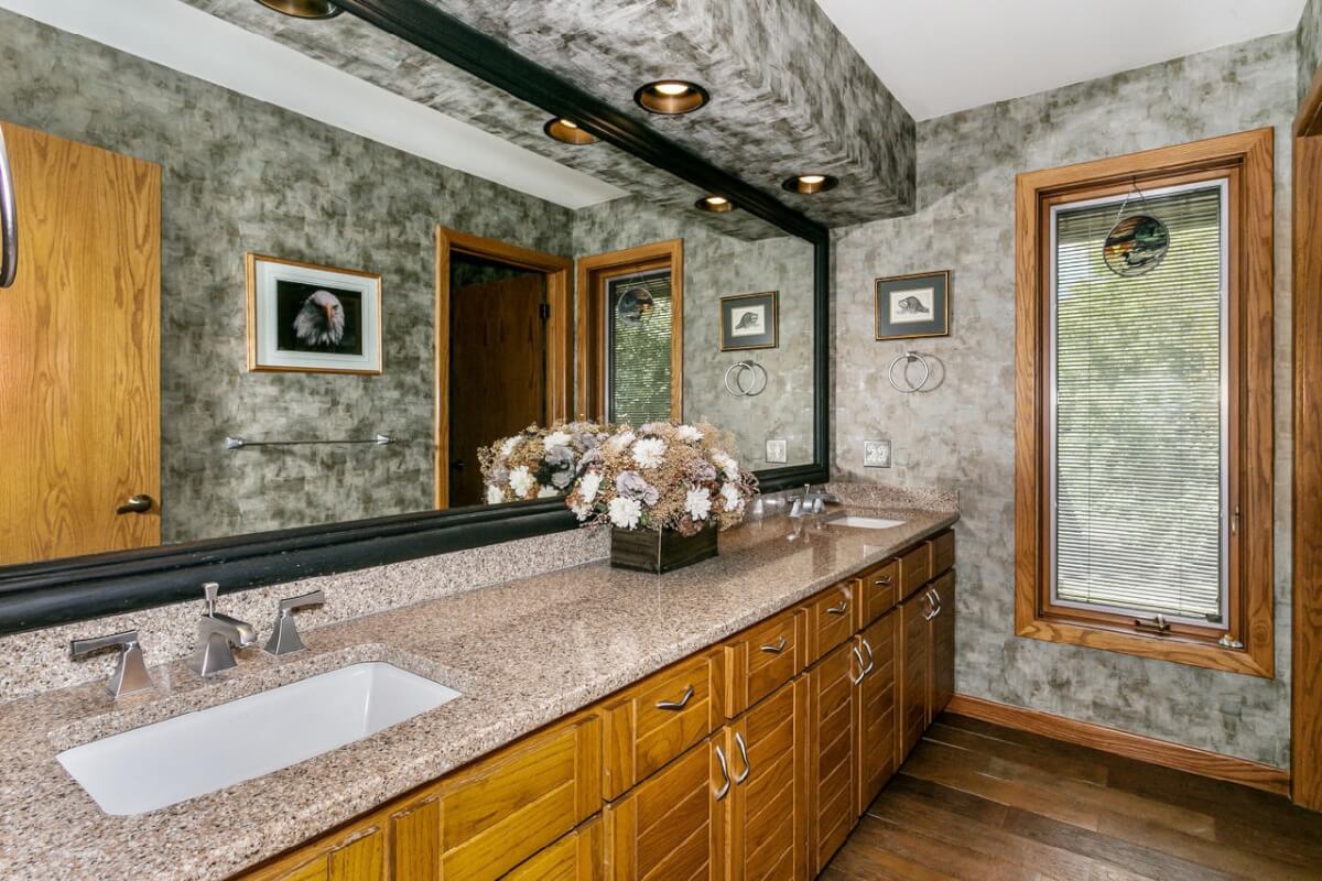 PROPERTY DESCRIPTION: BEAUTIFUL 5 bed/3.5 bath home with impressive & unique architecture. Nestled among the trees on 46.9 lovely acres! Located on a paved road, behind a gated entrance, at the end of a paved driveway, and with a covered entry way that is both beautiful AND functional. Country living doesn’t get any more convenient than this! Enjoy unprecedented natural light on all levels of this home. The amenities include gorgeous stone details/fireplaces, oversized windows, a main floor office space, downstairs game room and wine cellar, and a whole house back-up generator. A secluded, quality deck off of the back of the home reveals a view like no other. The property also includes a 58′ x 80′ outbuilding with concrete floor and attached lean-to, chicken coop, pond, 3 livestock pens, a part of the Little Walnut River, and a beautiful wooded area that has been well maintained to allow for a fire pit and outdoor entertaining. This listing is ideal for a horse property, an outdoors enthusiast, or anyone who wants to own a little chunk of paradise! Schedule a private viewing today.