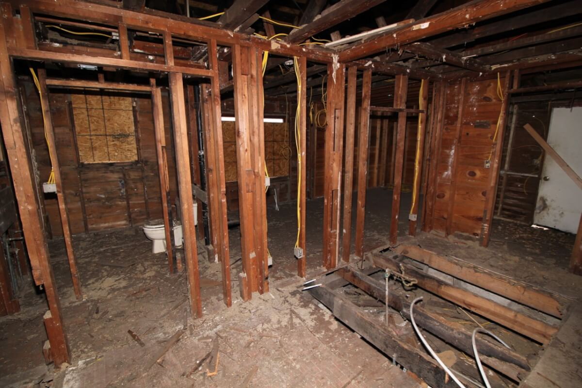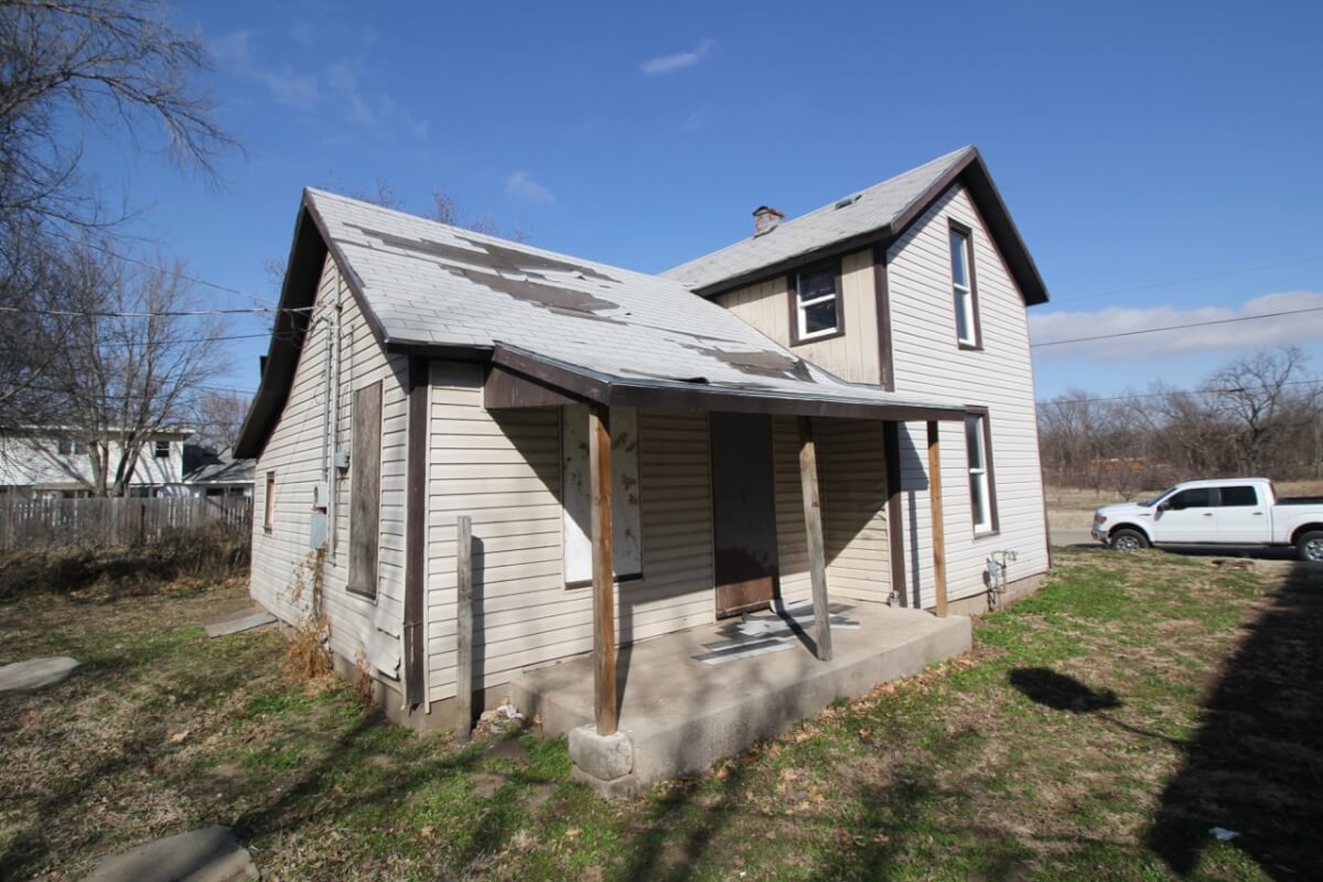 Home on corner lot. Roof was replaced in 2015. Property has been gutted, see pictures. County data shows 912 square feet. 20’x14′ detached garage. Lot is 155’x50′.