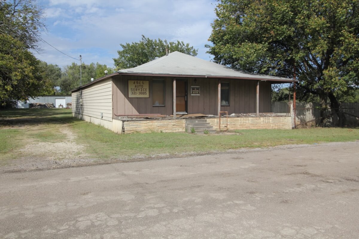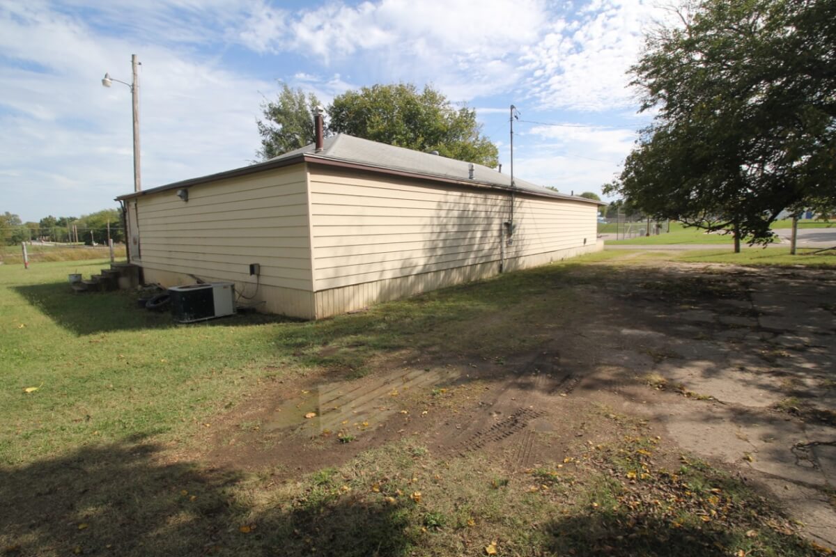 PROPERTY DESCRIPTION: Situated on .8 acres, this property offers a 2,376 square foot office building with a 70′ x 30′ garage in the rear of the property. Both structures were built in 1940 and have been most recently utilized as storage. Property is across the street from Forest Park and the El Dorado Municipal Pool. Currently zoned residential.