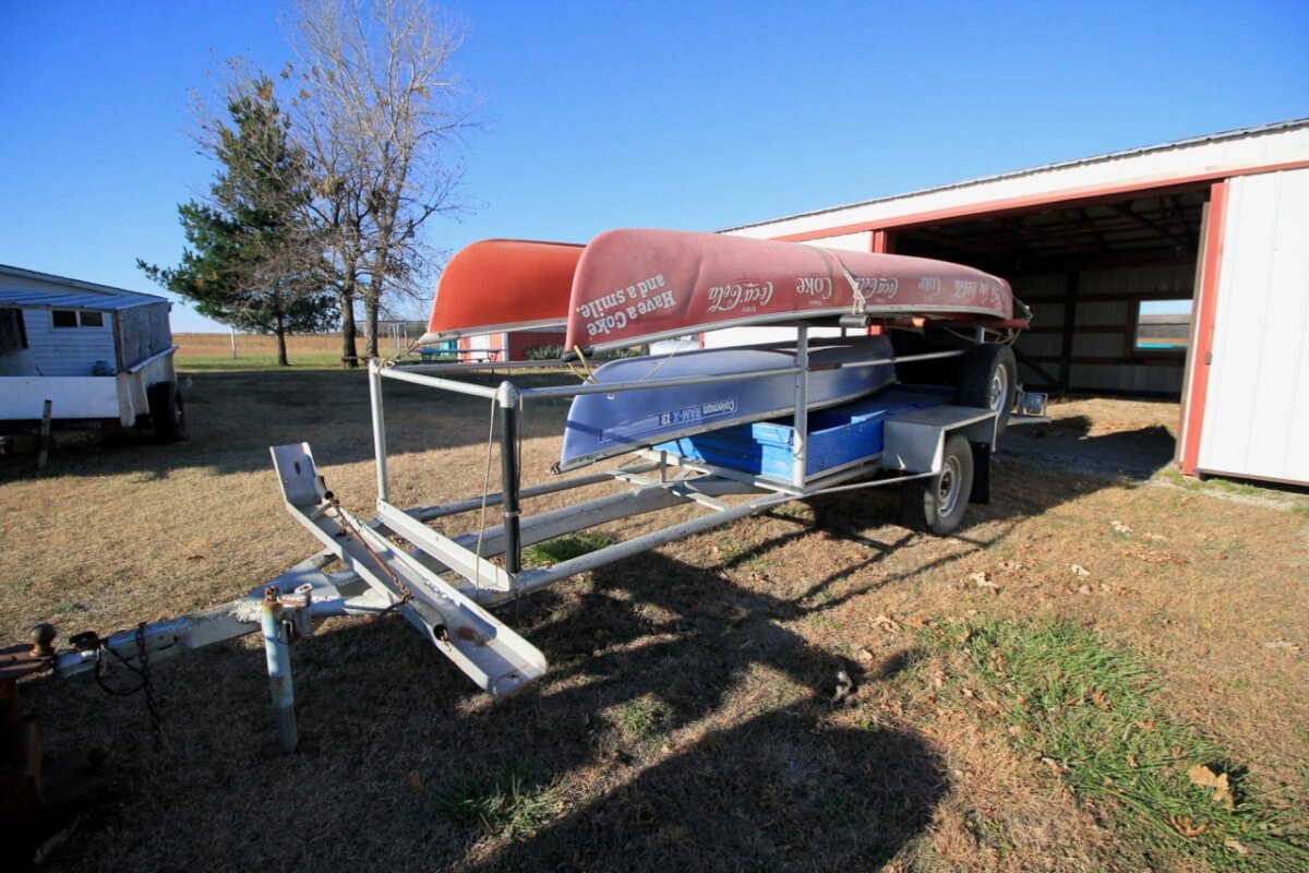 3 Coleman Canoes with Trailer, one is a 1970’s Coca Cola Sponsored Canoe