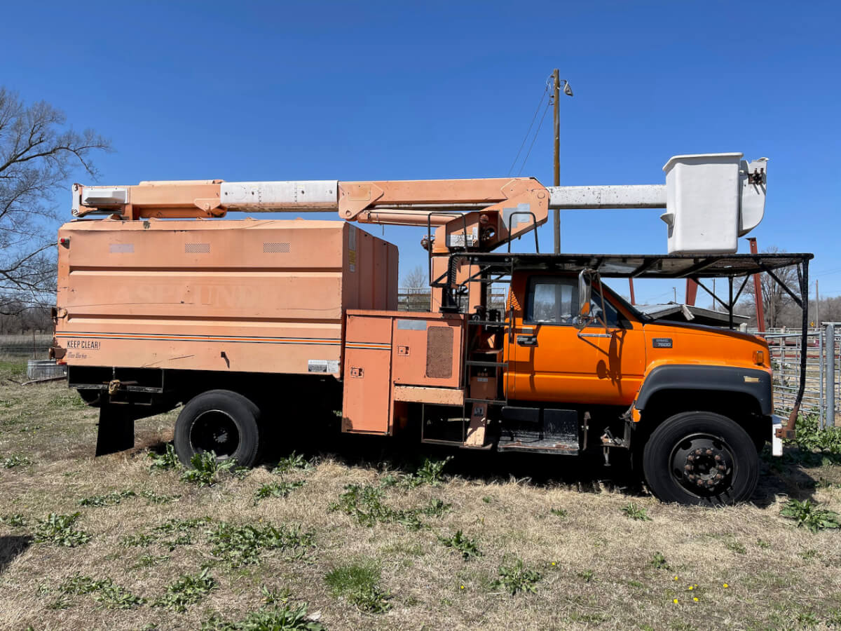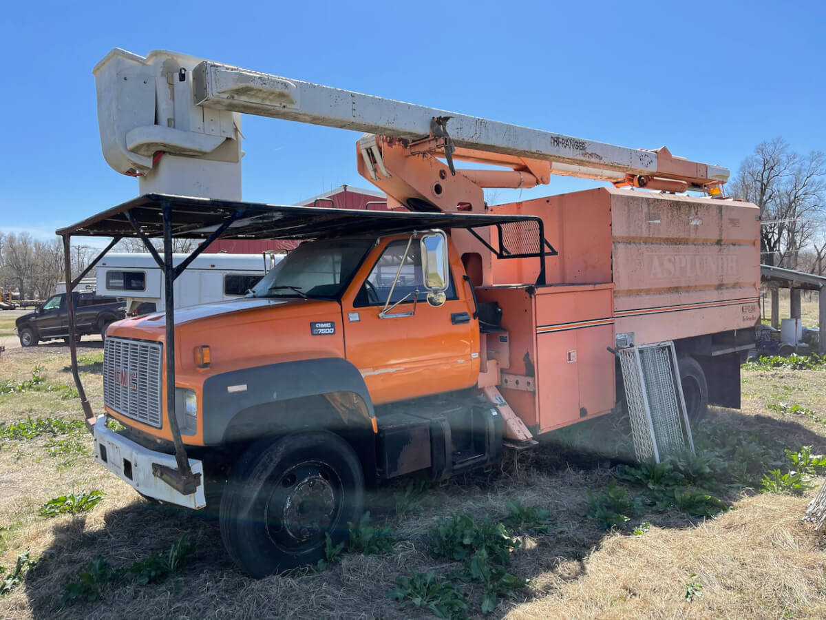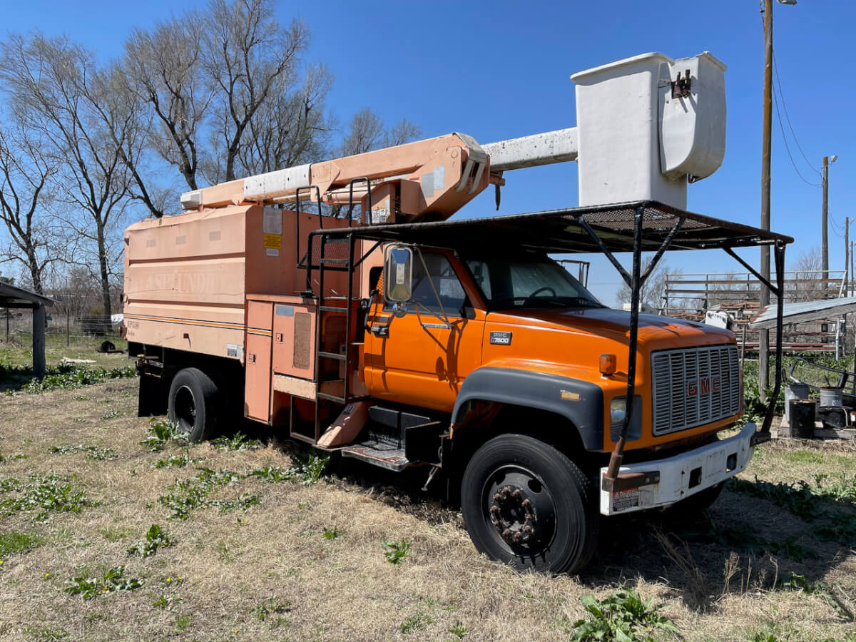 1997 GMC C7500 Bucket Truck, Tree Truck, 5 speed manual, VIN 1GDL7H1POUJ513426