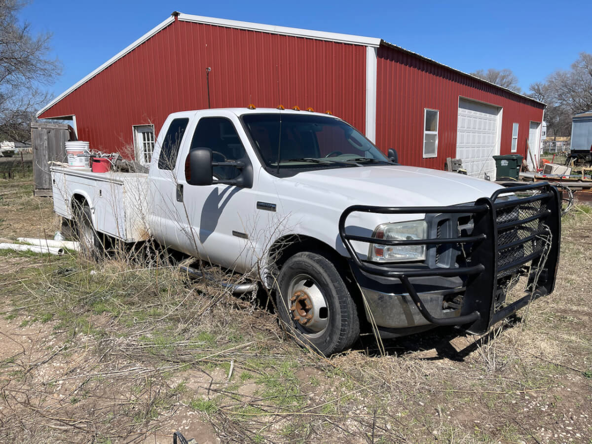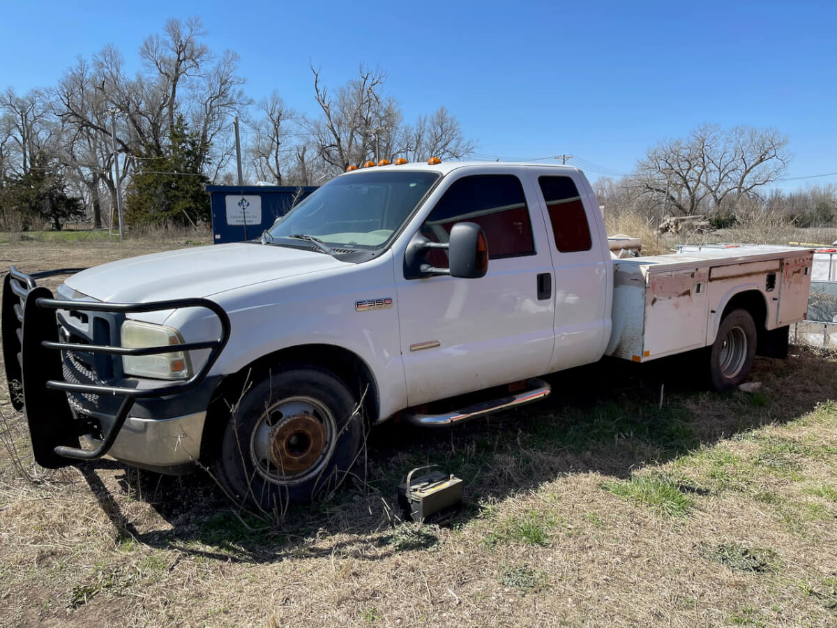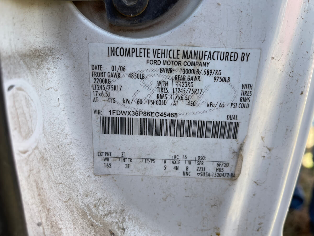 Ford F-350 Powerstroke V8 Diesel, 2WD dually, auto, mileage unknown, VIN 1FDWX36P86EC45468, cut down utility bed