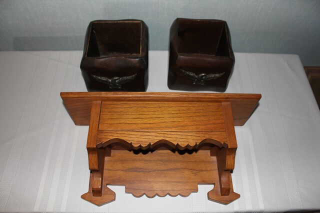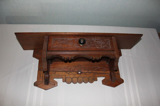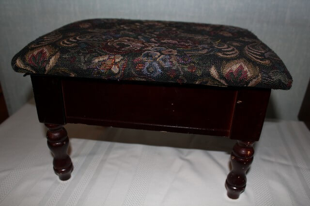 Singer Sewing Machine (1940s) in Walnut Cabinet with Wooden Stool