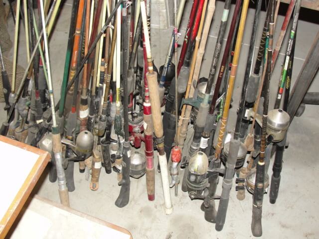 Lots of Fishing Poles, Equipment, & Tackle