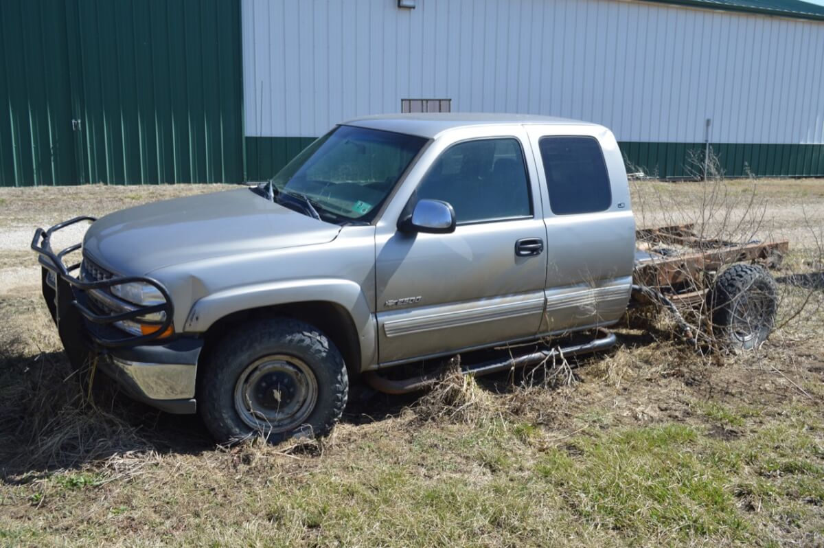 1999 Silver Chevy 2500 LS Extended Cab, 4×4, No Exhaust