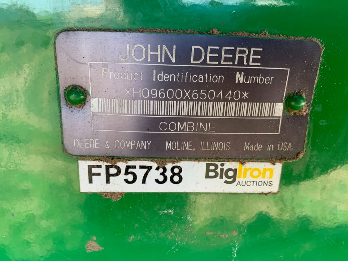 JD 9600 Combine, 2WD H09600X650440 w/ 5631 Engine Hrs, Sep Hrs, 3874