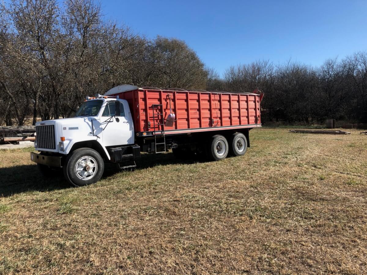 1974 Ford, 5sp, Hi/Lo, 3208 Cat Diesel, TwinScrew, 204,000 Miles, 20’ Bed Grain Sides, Rollover Tarp