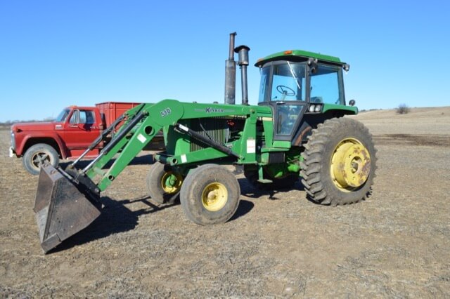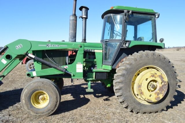 John Deere 4450 w/Koyker 510 Loader, Cab, Power Quad, 10,000 hours, New Rear Radials, 18.4-R38 Tires, Underhaul, Good Hydraulics, New Cab Corners Not Reflected In Pictures. Serial #RW4450H002597