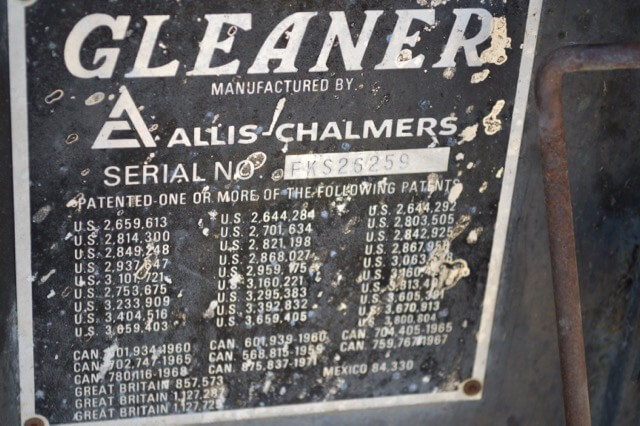Gleaner F Combine, Allis Chalmers Diesel, 18 Foot Header Cab, Air, Serial #FKS25259