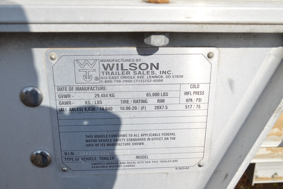 2016 Wilson Grain Trailer 45’ Shur Lock