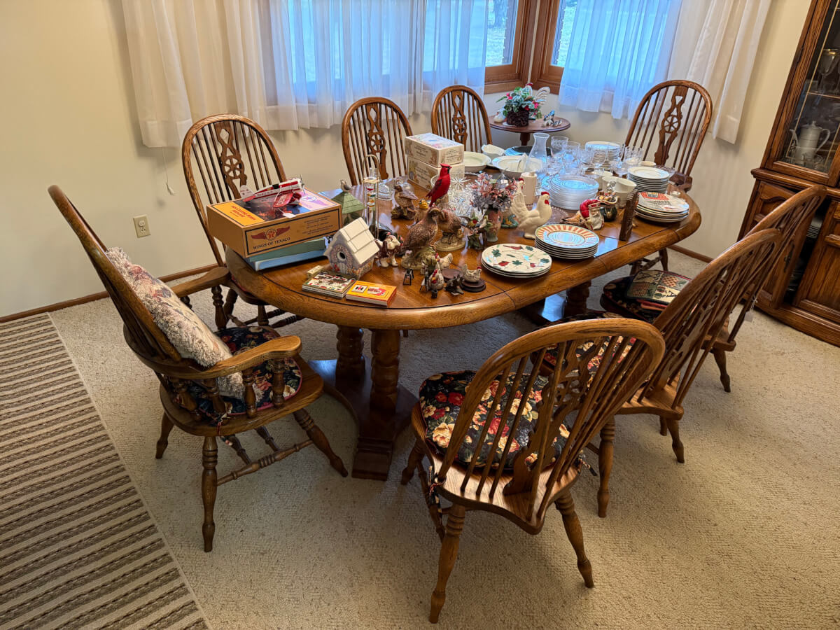 | 101 | Dining Room Table with 8 Chairs – Wagon Wheel Backs |