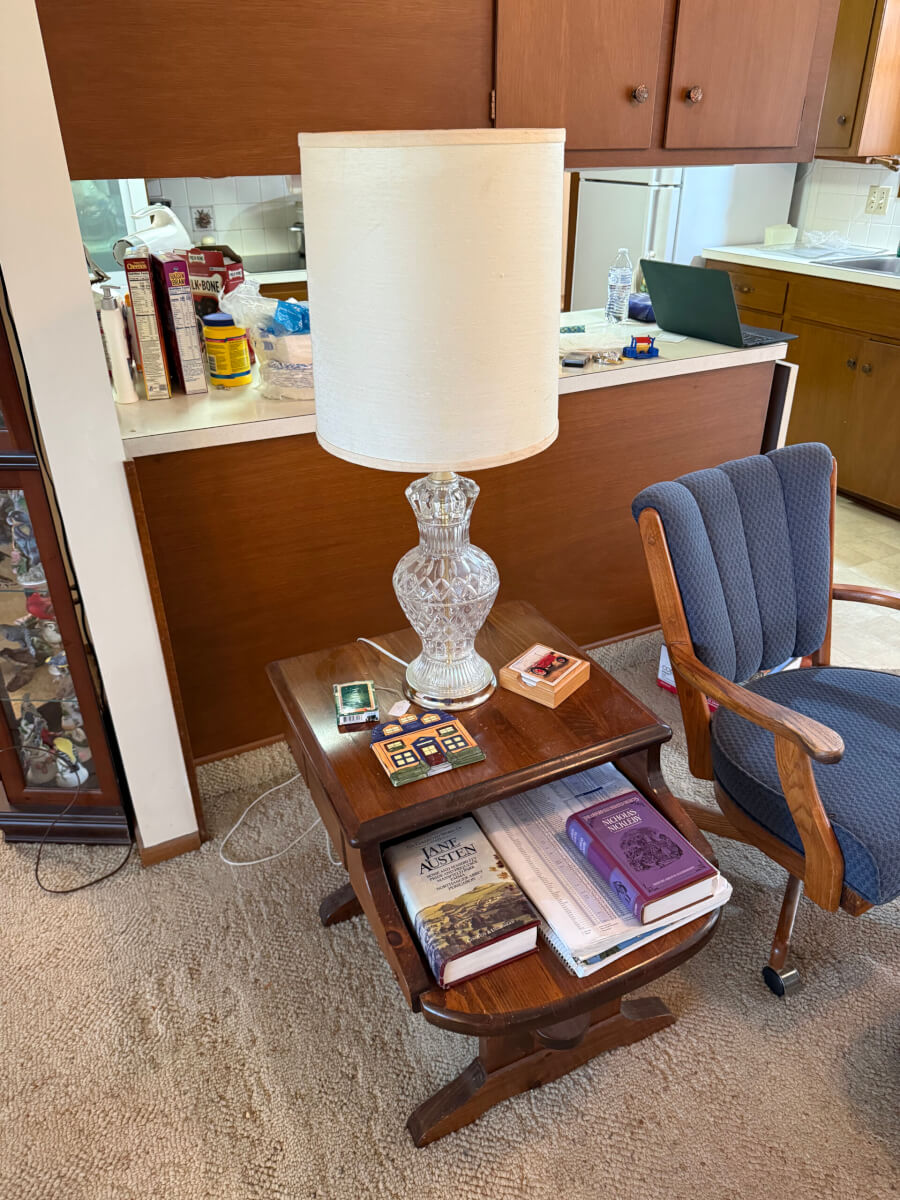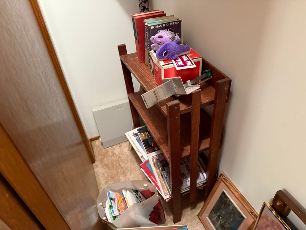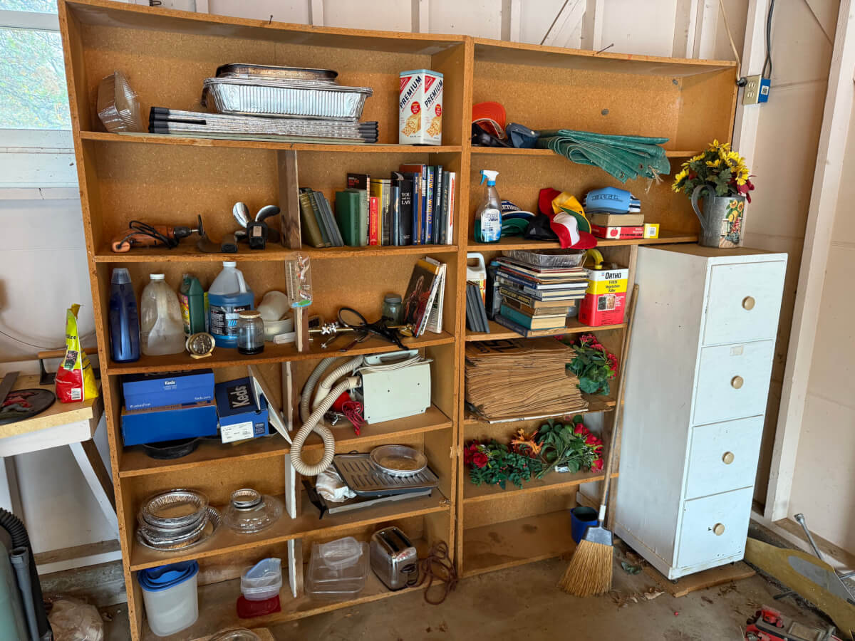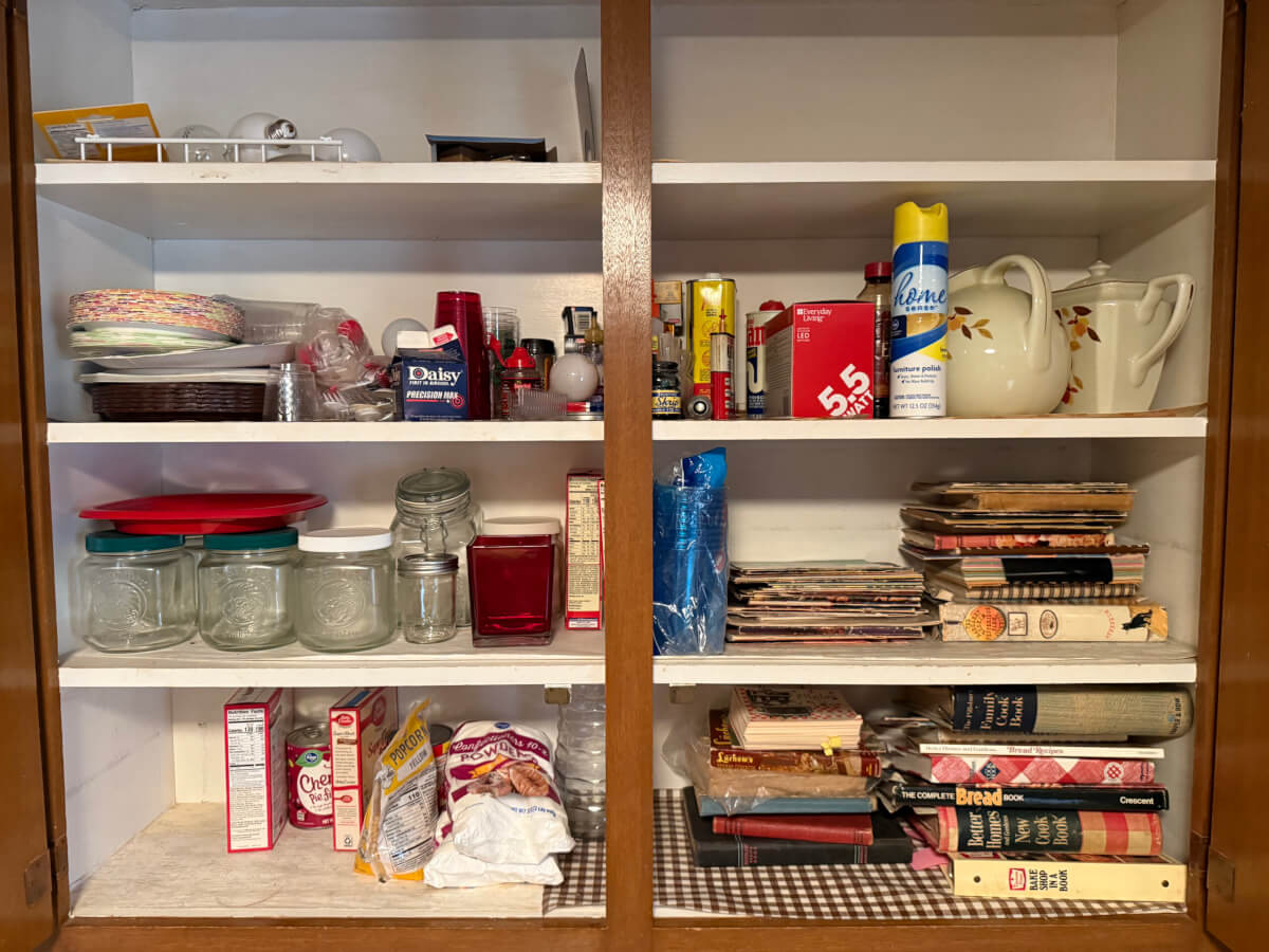 | 112 | Contents of Upper Laundry Room Cabinet – Cookbooks, Lightbulbs, China |