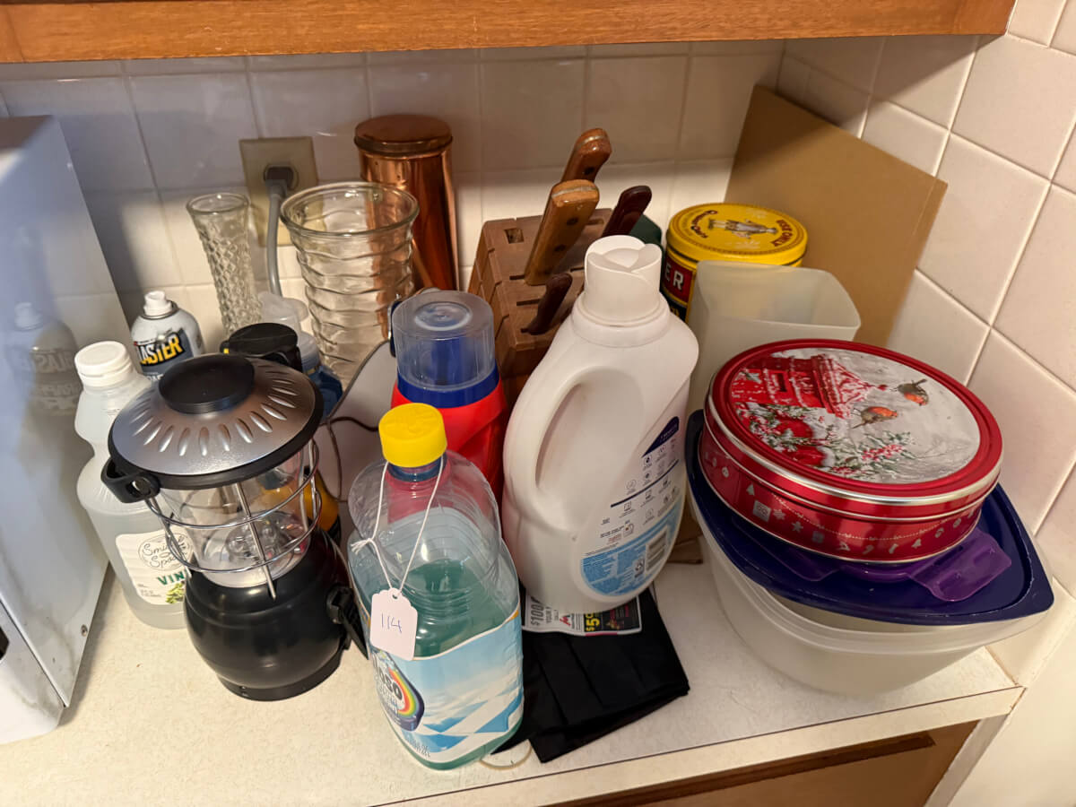 | 114 | Knife Block, Lantern, Flashlight, Vases, Laundry Supplies |