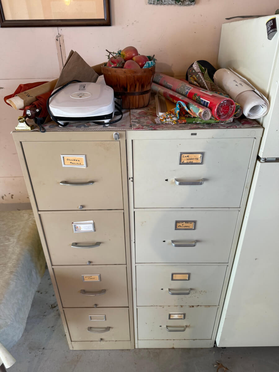| 132 | (2) File Cabinets, Nonfunctional Fridge, Sheds |