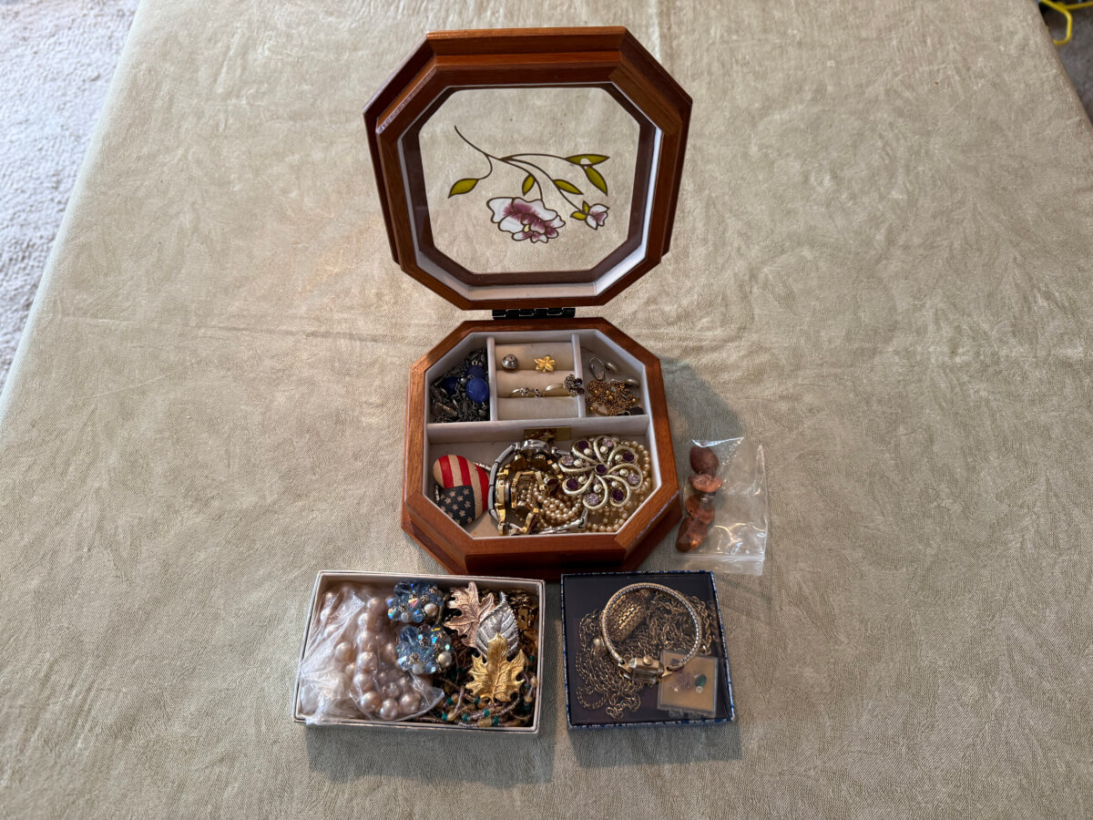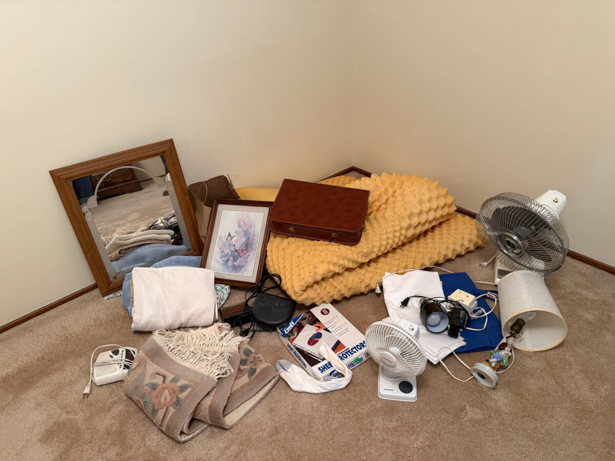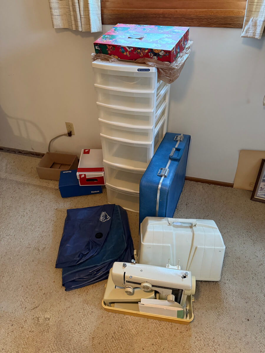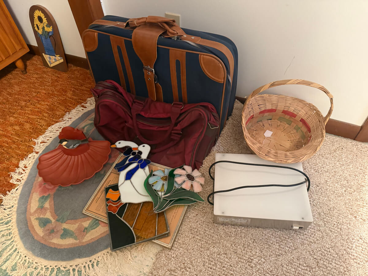 | 29 | New Home Sewing Machine, Luggage, Air Mattress, Organizer, Stained Glass |