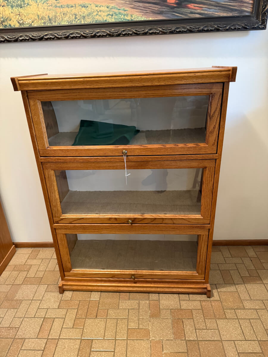 | 134 | Shelf & Contents – Books, Skillet, 4 Drawer Wooden File Cabinet, Caps, Books |