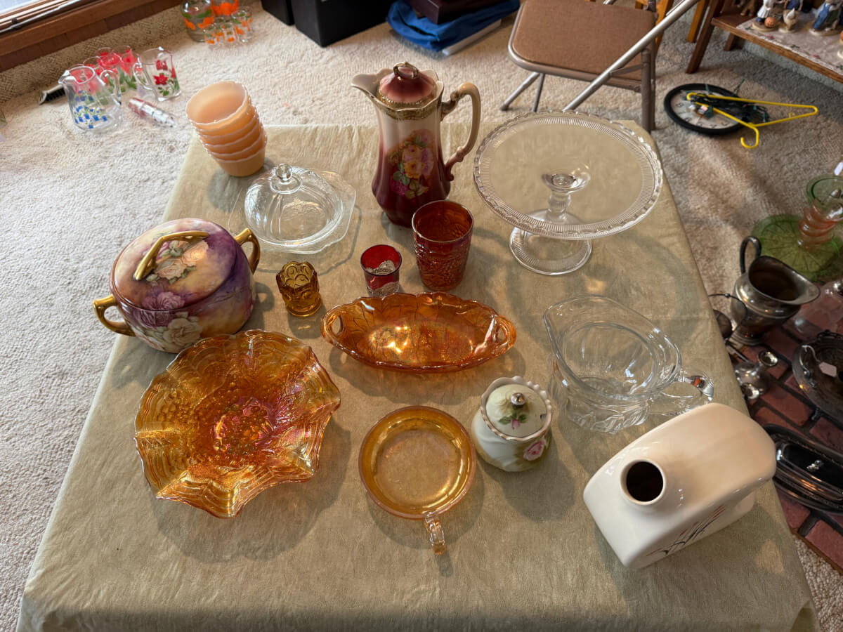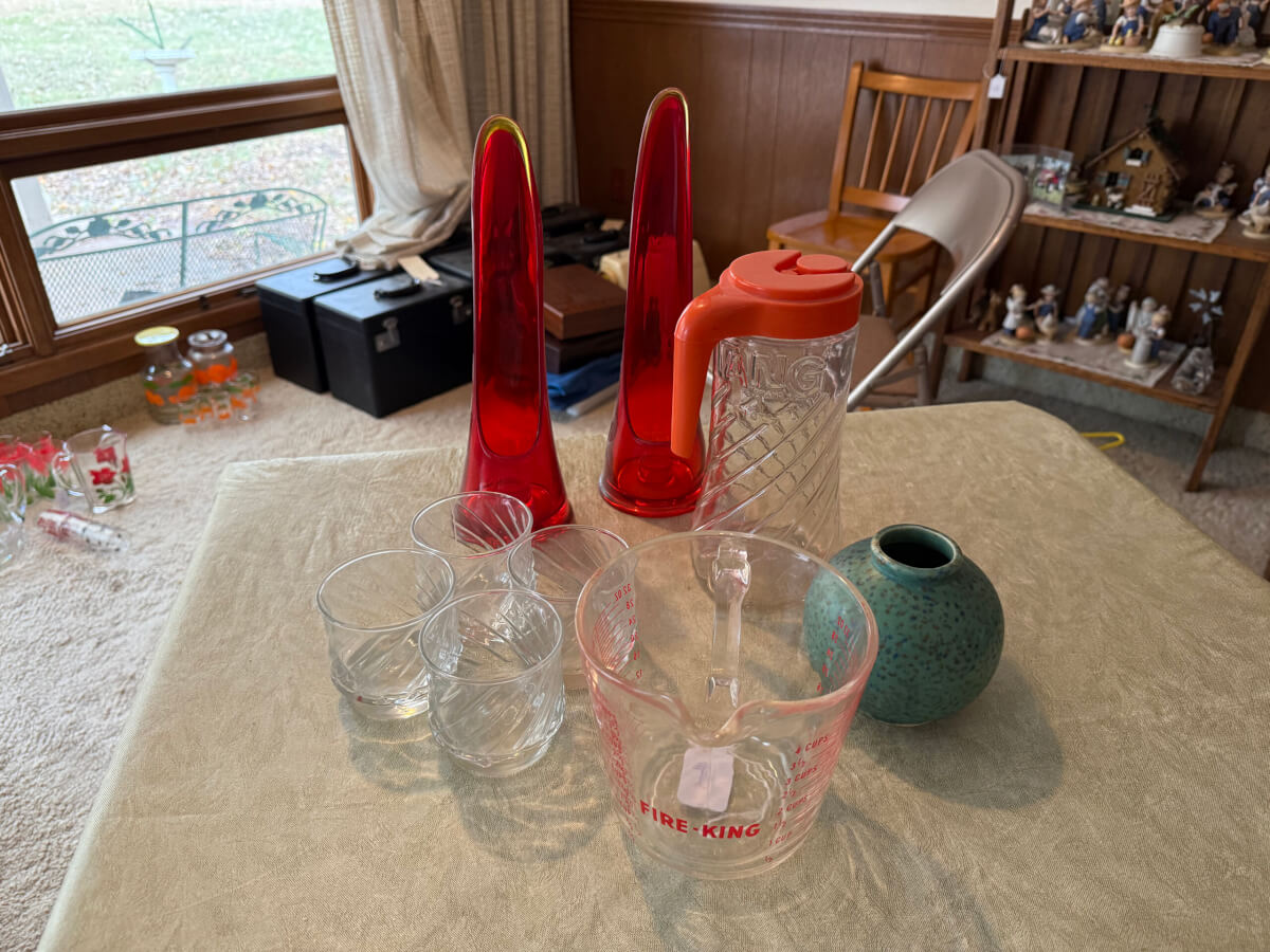| 80 | Carnival Glass, Chocolate Pitcher, Ruby Red Glass, Clear Carnival Glass, Hall Pitcher |