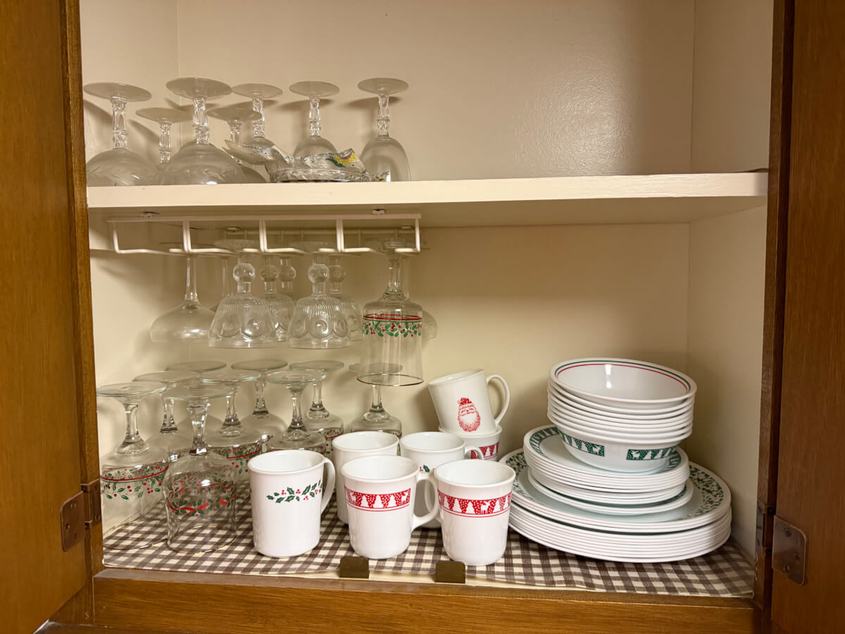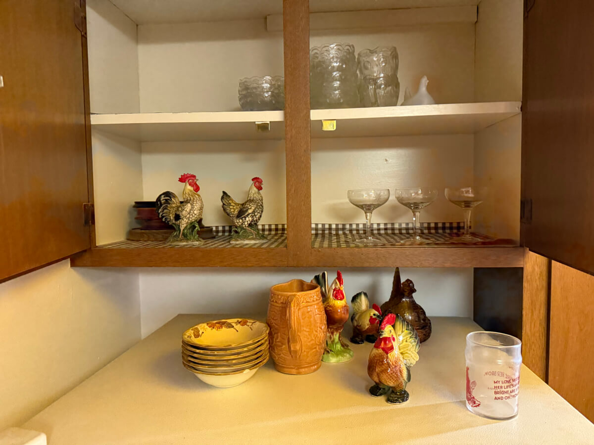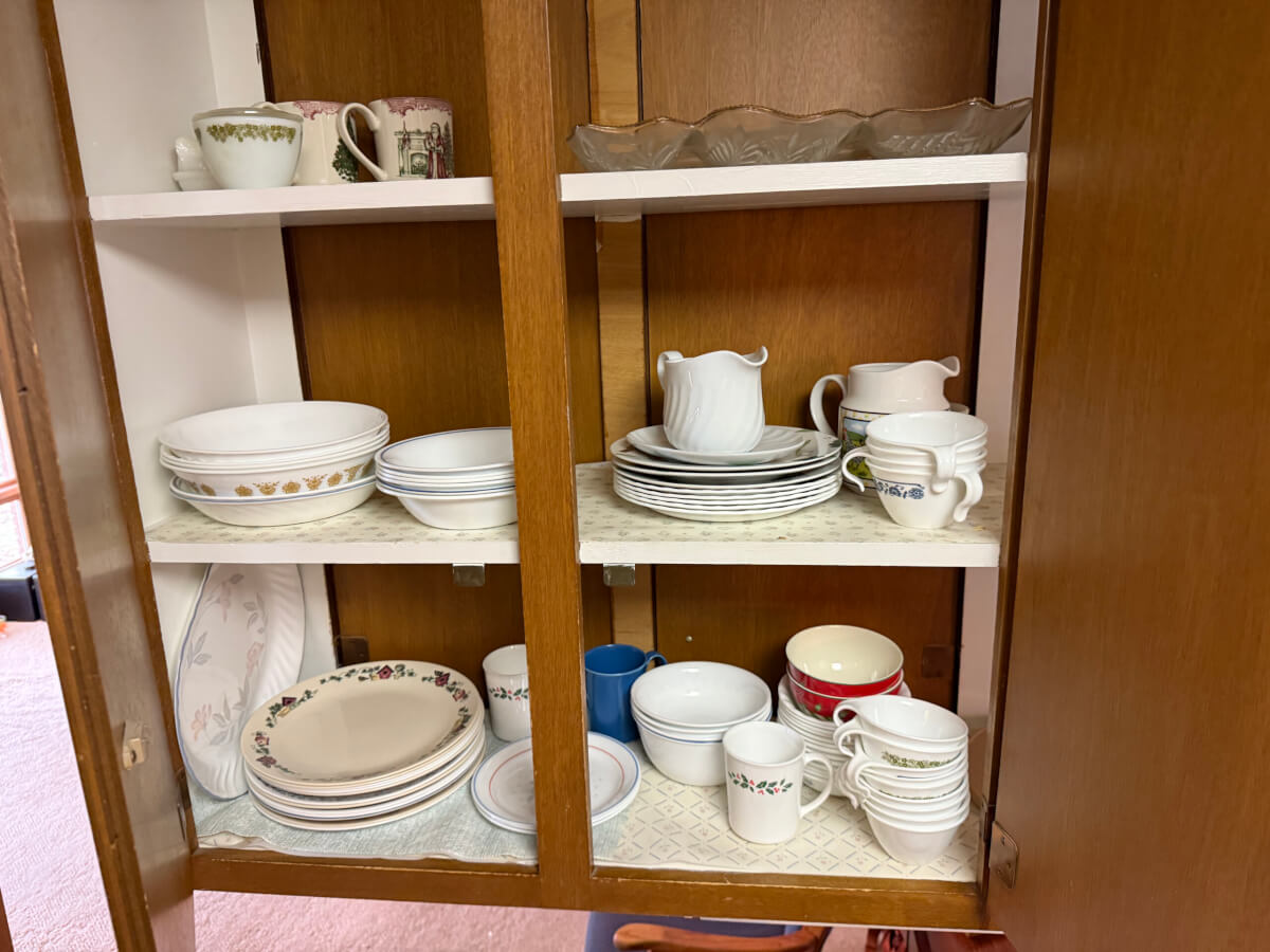 | 90 | Contents of Upper Cabinets – Vases, Matches, Holiday Dishes, Coffee Cups |