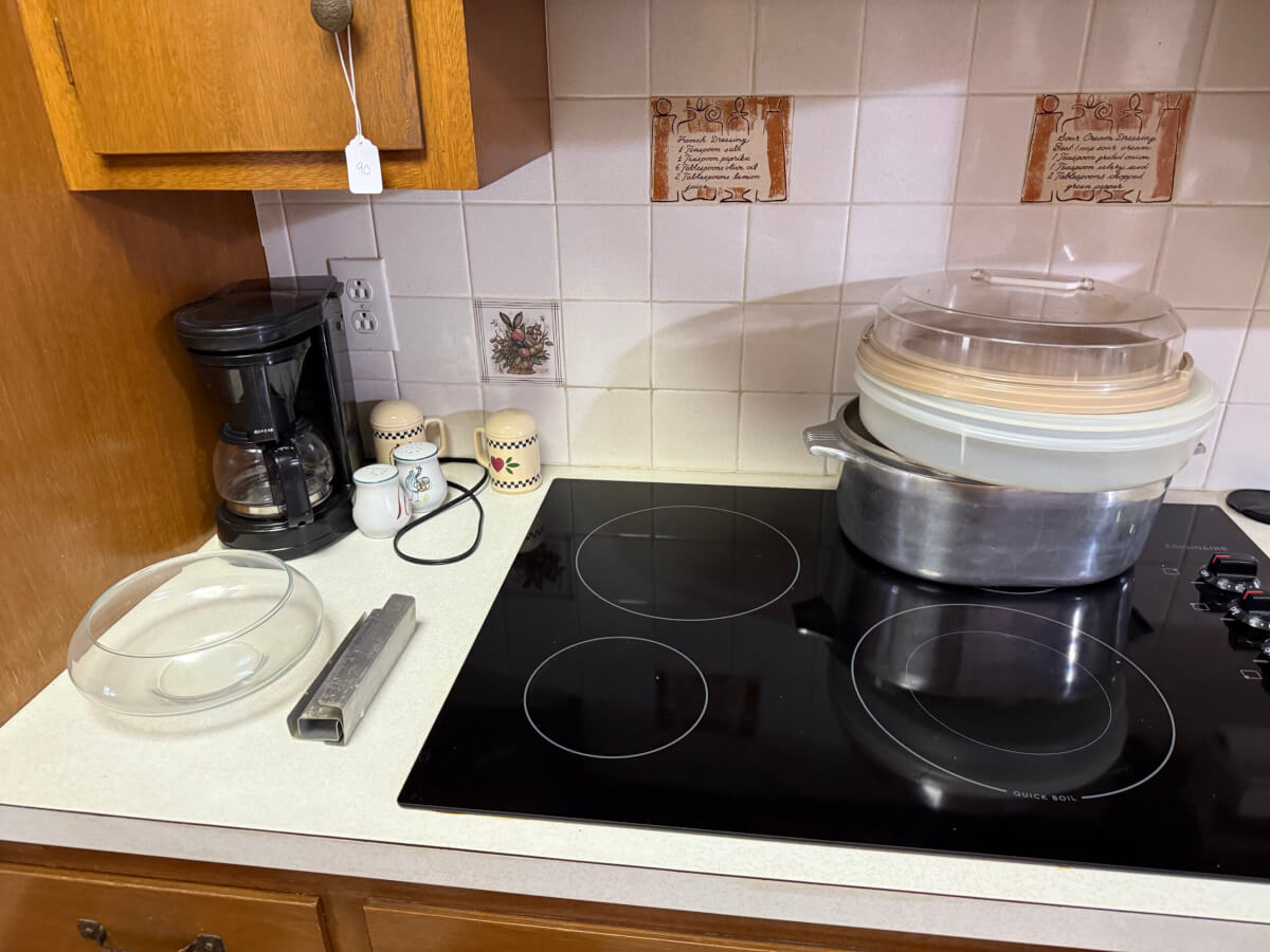 | 91 | Contents of Lower Cabinets & Countertop – Roasters, Cake Pan, Coffee Maker, Pans, Dishes, Corelware |