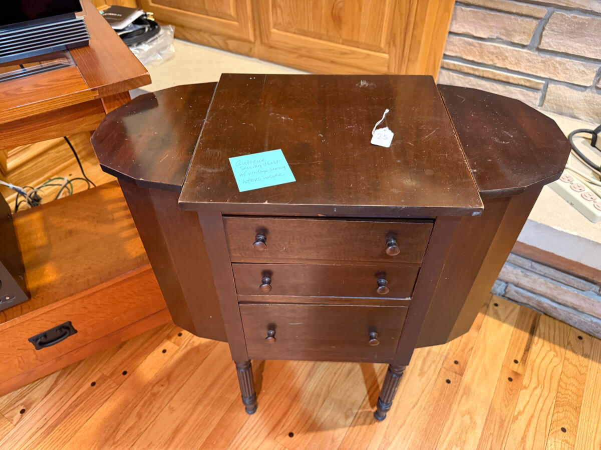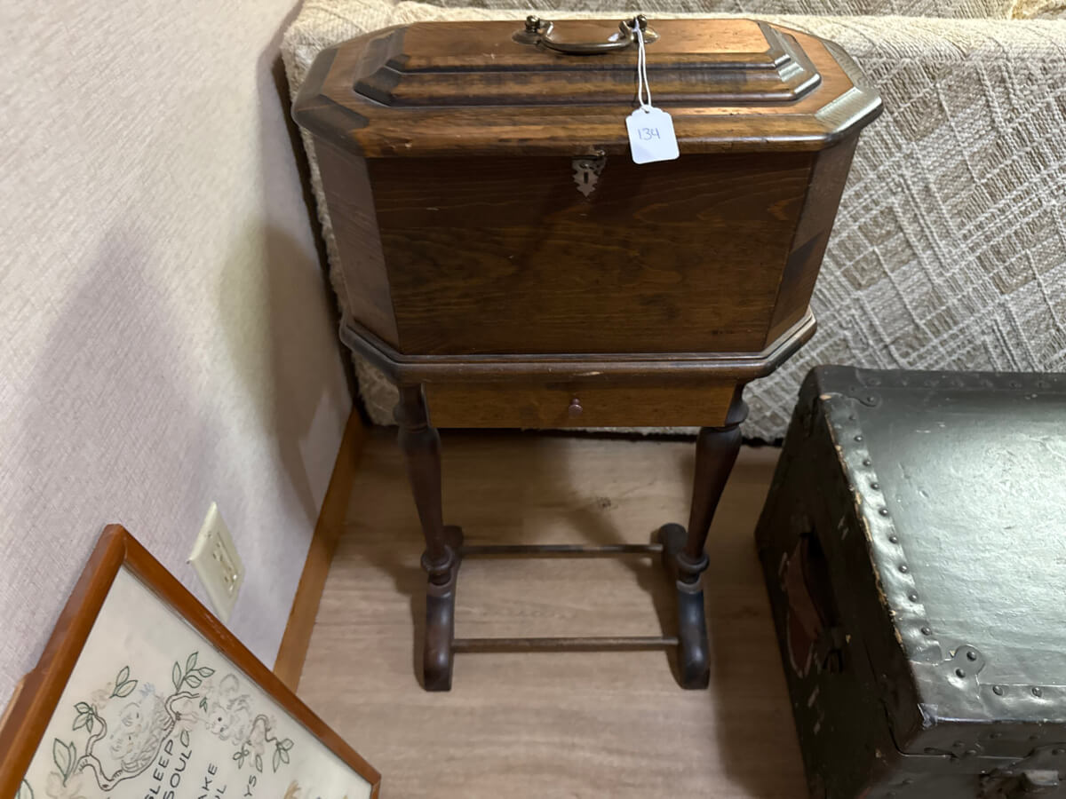 | 25 | Antique Sewing Chest full of Vintage Showing Notions |