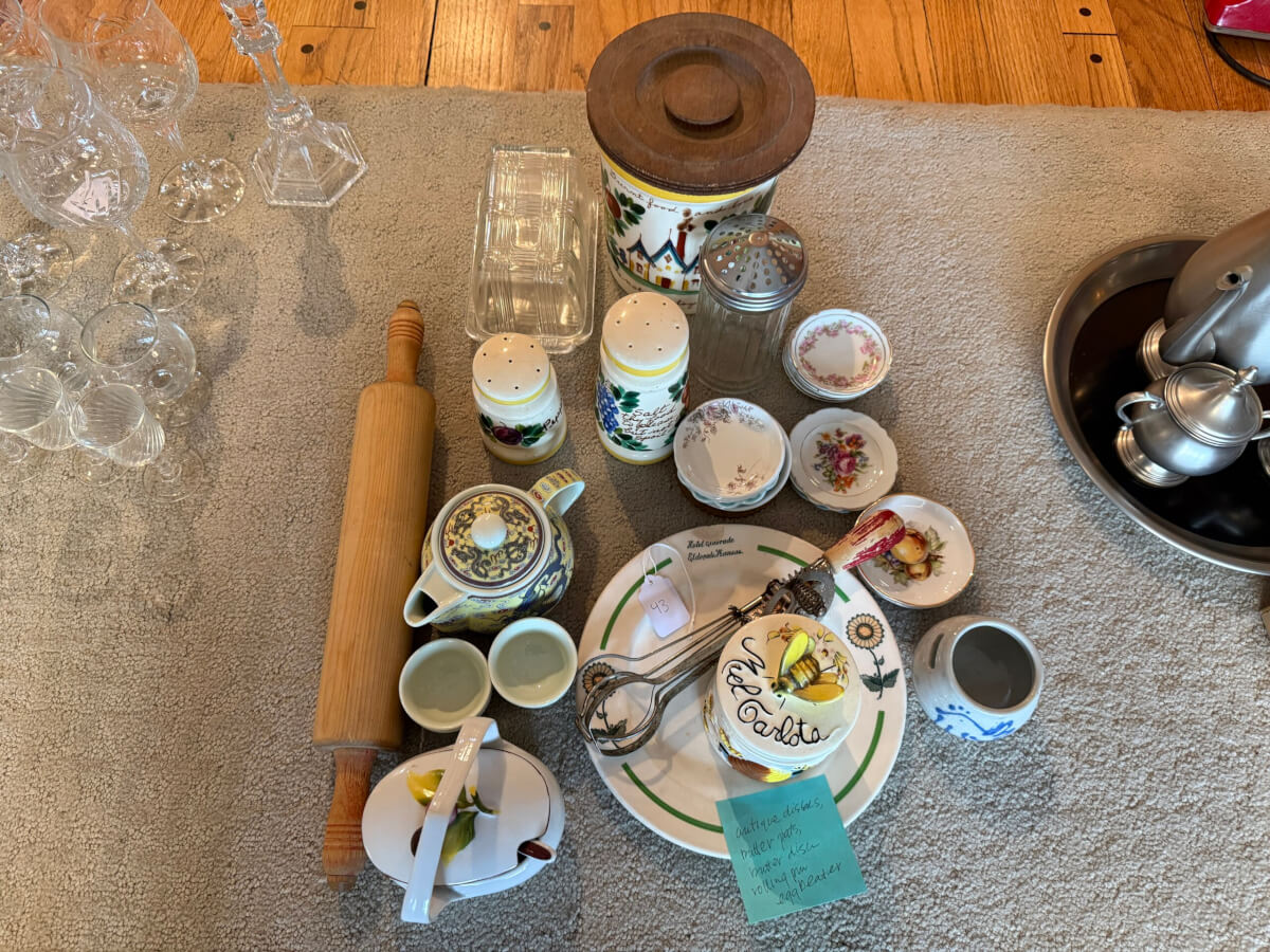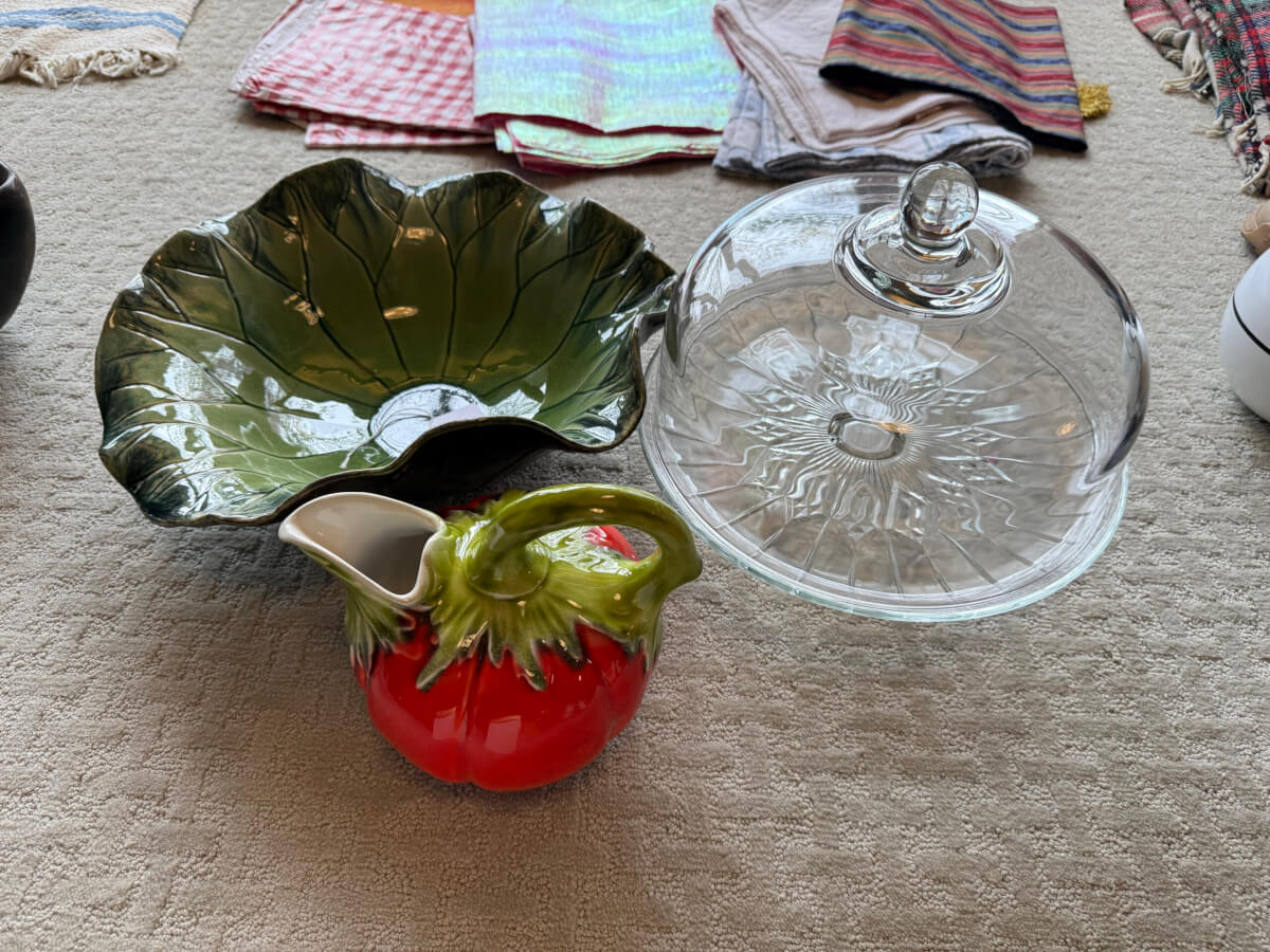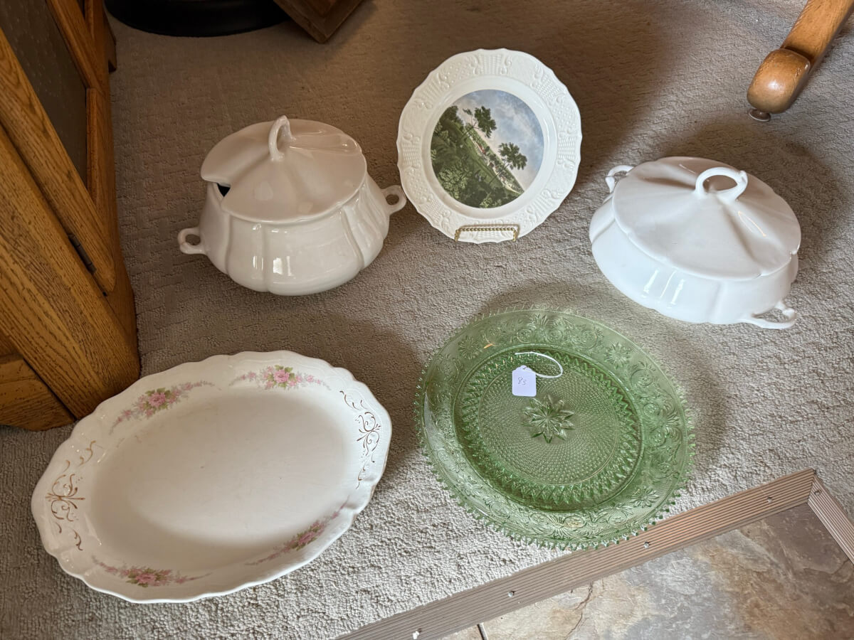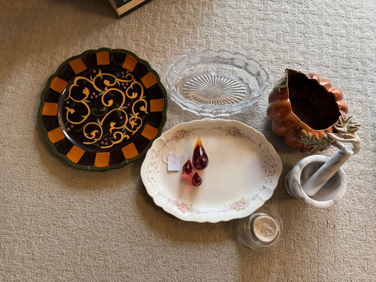 | 43 | Antique Dishes, Butter Dish, Rolling Pin & Egg Beater |