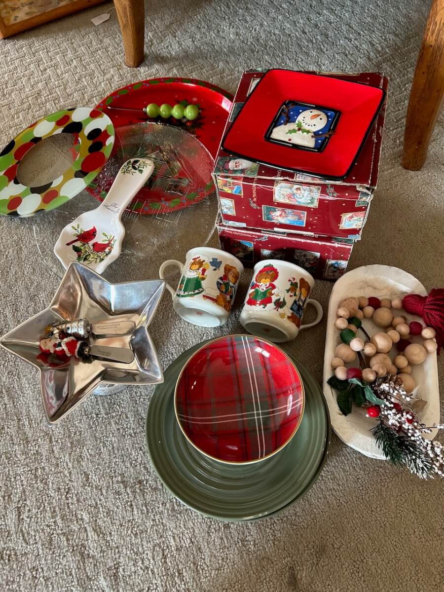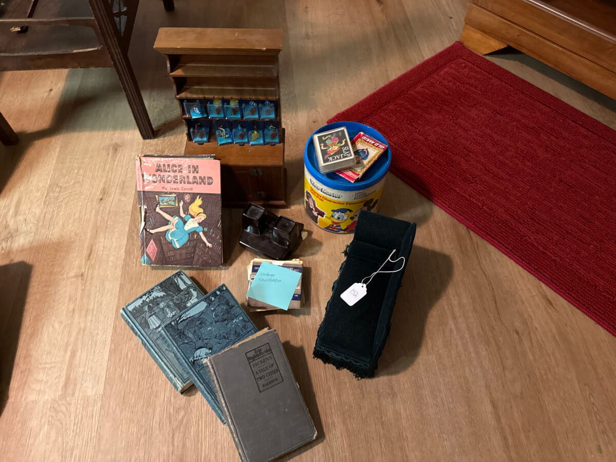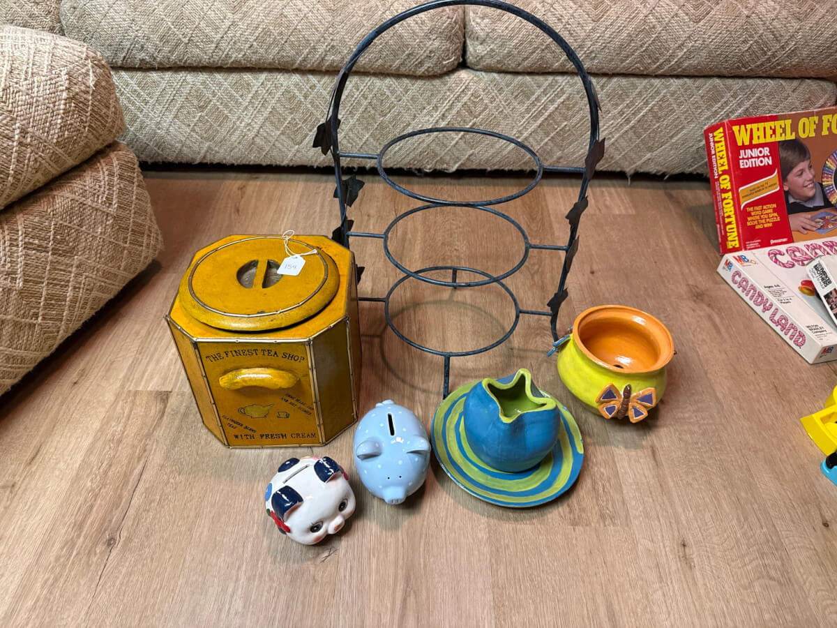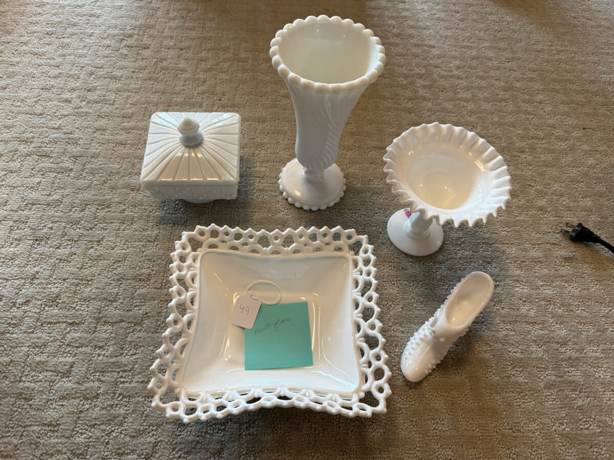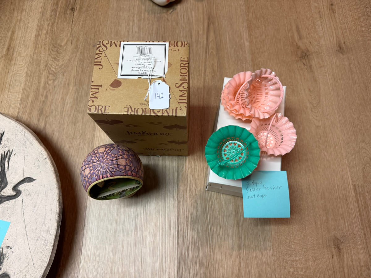 | 43 | Antique Dishes, Butter Dish, Rolling Pin & Egg Beater |
