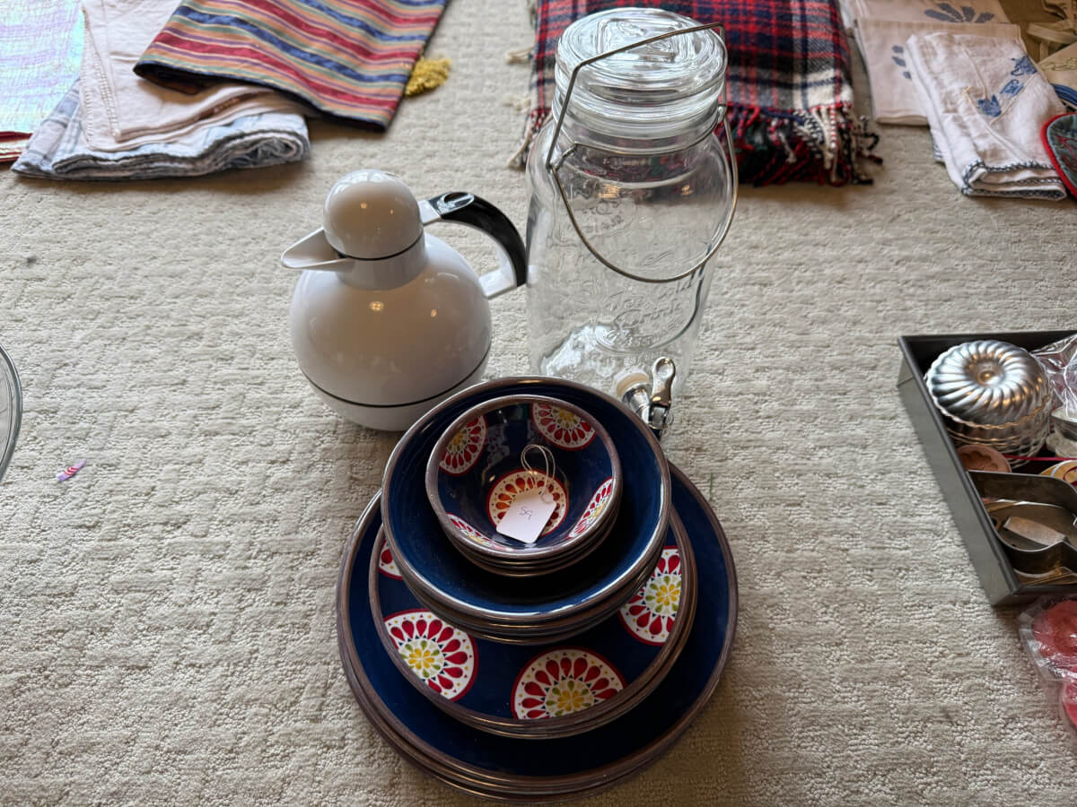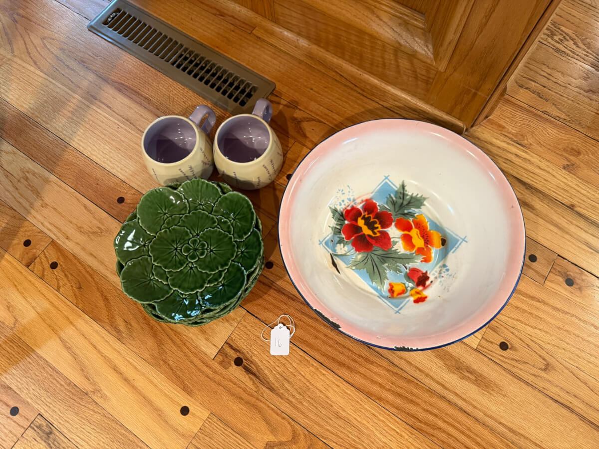 | 16 | Antique Granite Flower Pattern Bowl, Plates & Mugs |