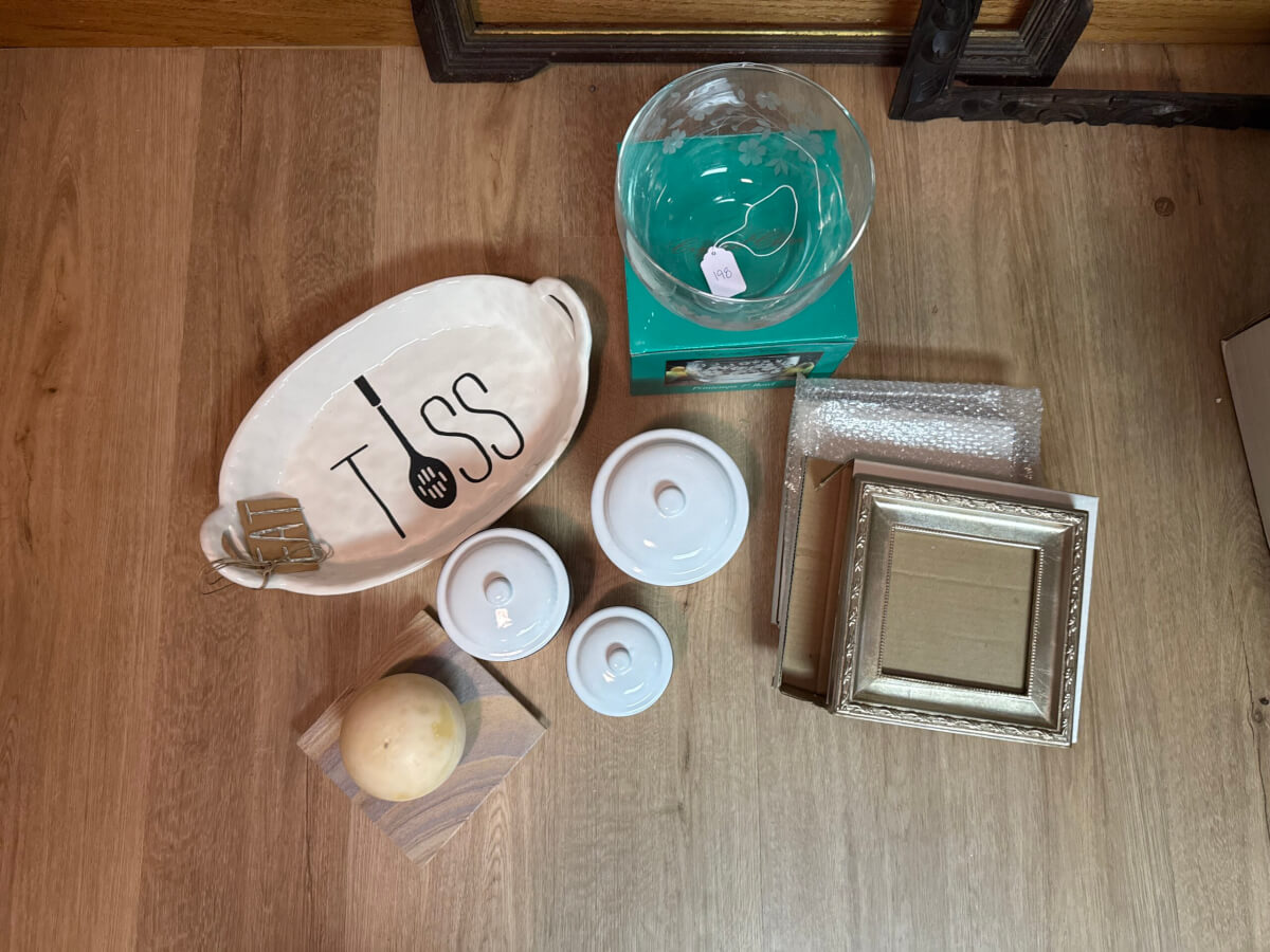 | 198 | Canisters, Picture Frames, Candle & Bowl |
