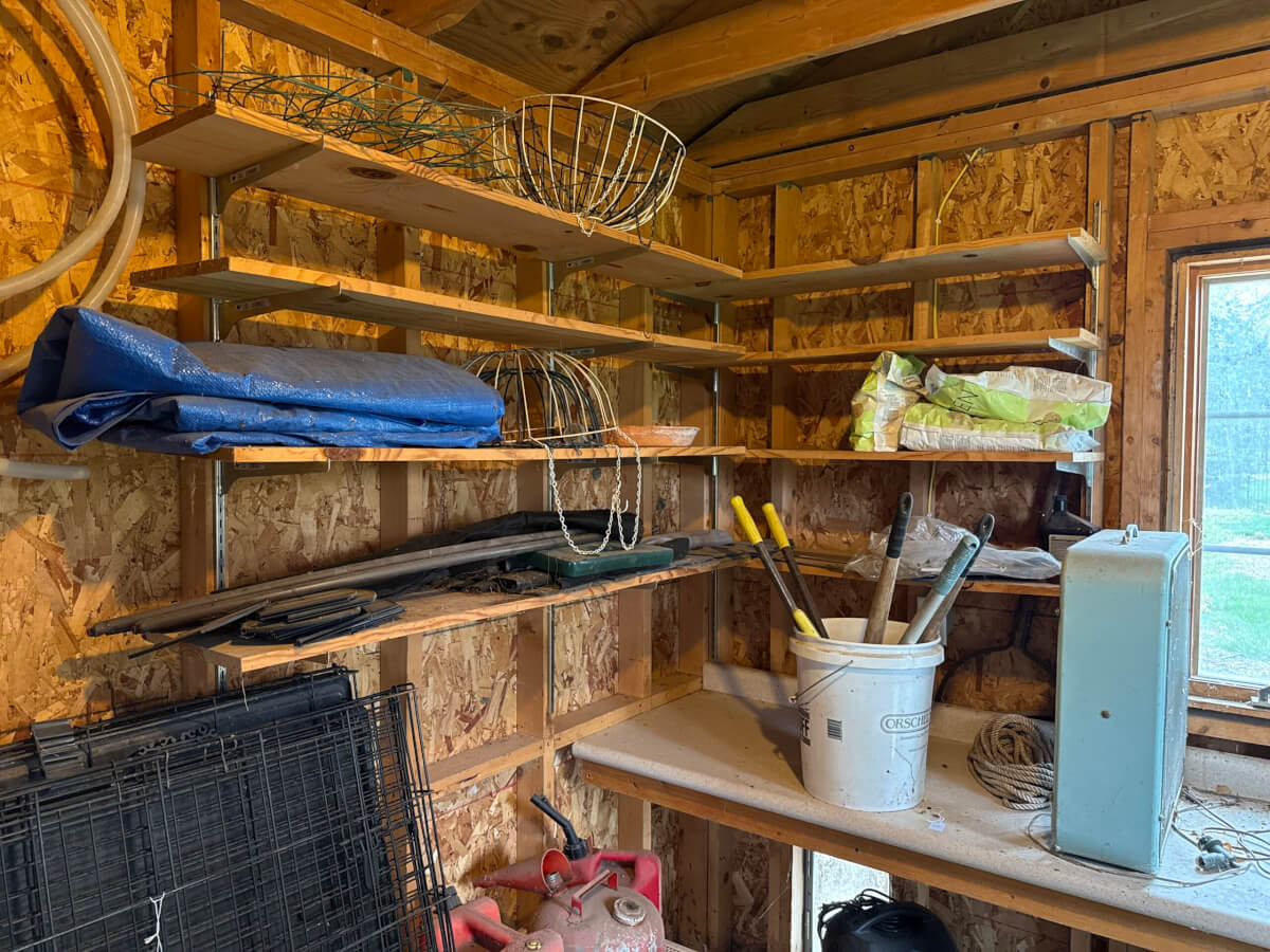 | 224 | Contents of N 1/3: Gas Can, Yard Tools, Hose Reel, Snow Fence, Misc Lumber – Not Include Ladder |