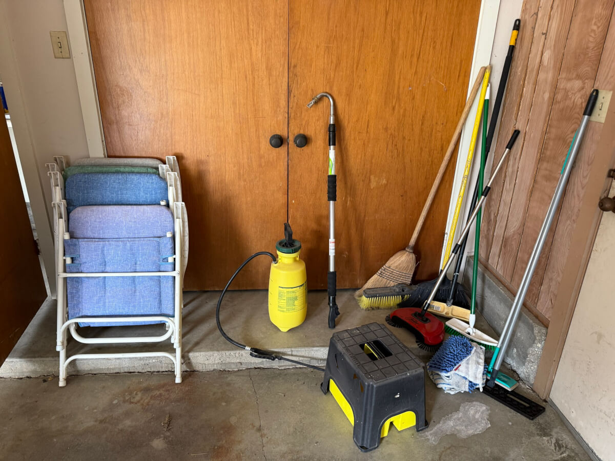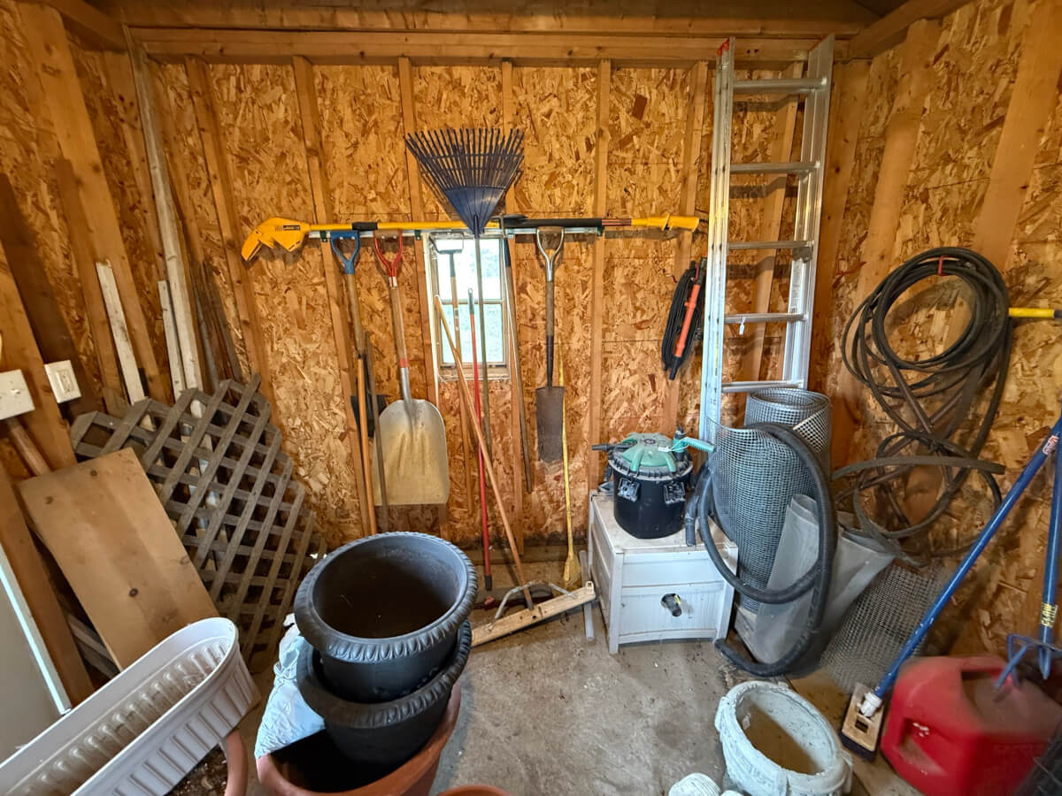 | 220 | Contents of SE Corner: Gas Cans, Shopvac, Knome, Hanging Baskets |