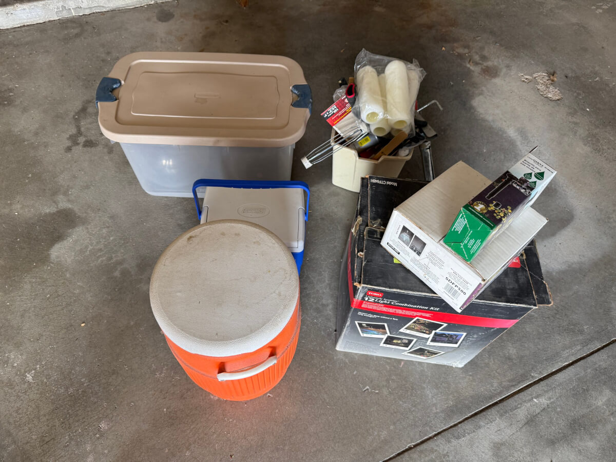 | 234 | Painting Supplies, Cooler, Outdoor Lighting & Tub |