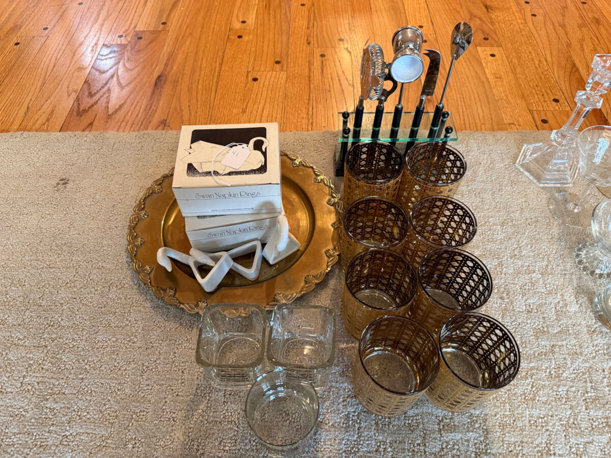 | 41 | Bar ware Utensils, Glasses, Napkin Rings & Serving Platter |