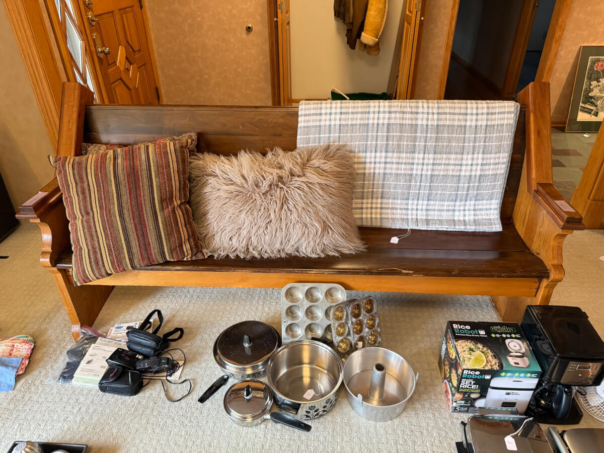 | 51 | Church Pew 76″, 3 Pillows & Blanket |