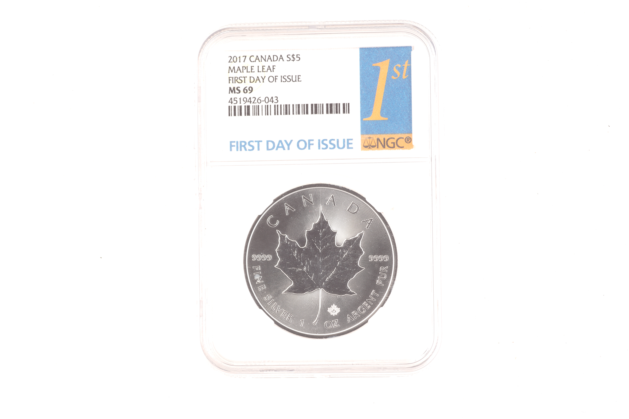 | 5 | 2017 .9999 Silver Maple $5 Graded NGC MS 69 |