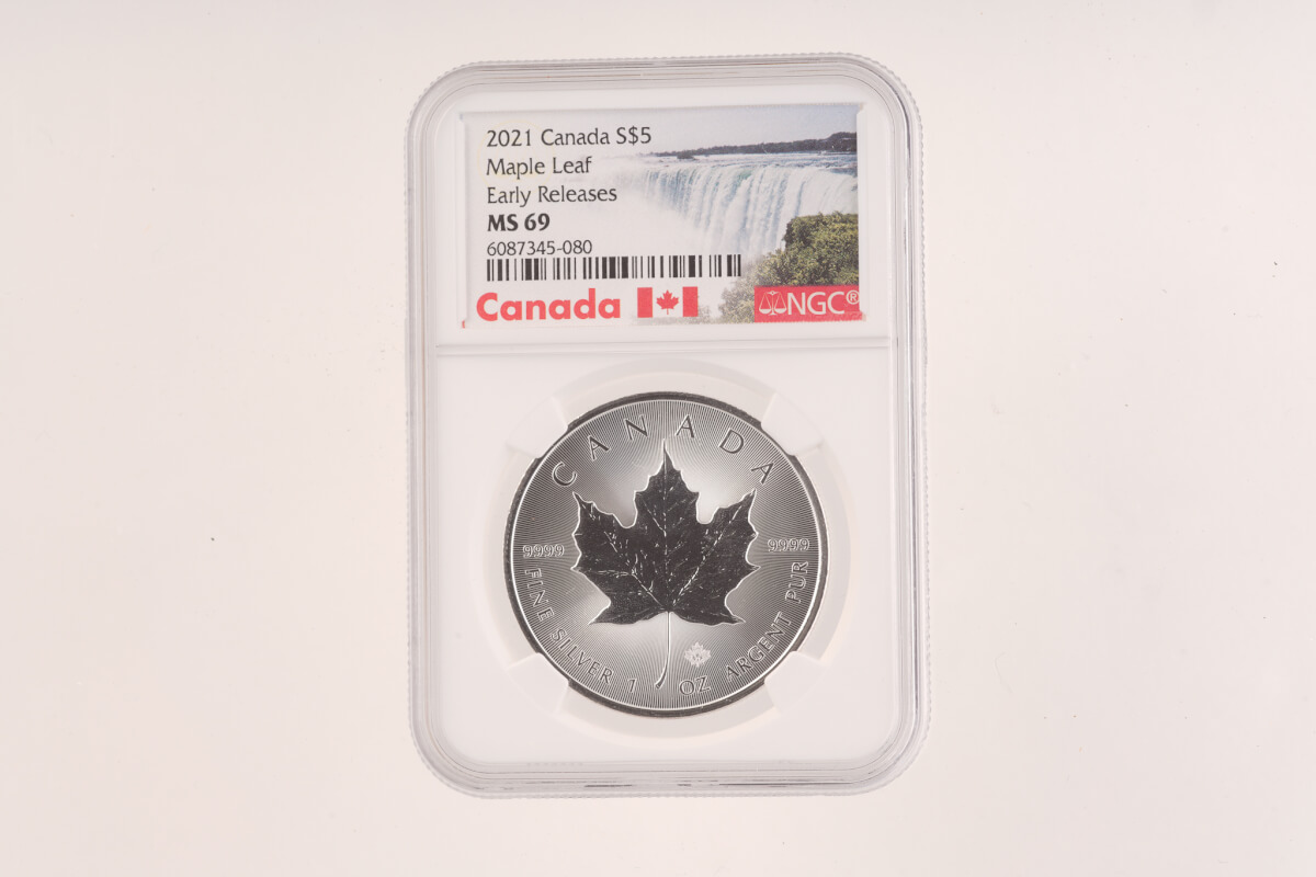 | 7 | 2021 .9999 Silver Maple $5 Graded NGC MS 69 |