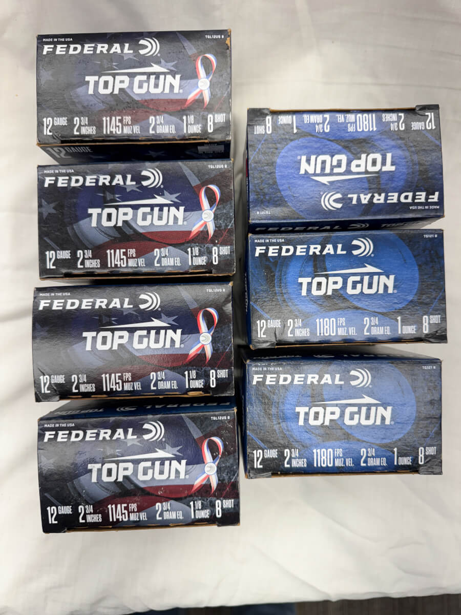 | 103 | 225 Rounds Federal 12ga 3″ Shotgun Shells |