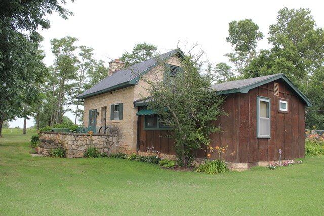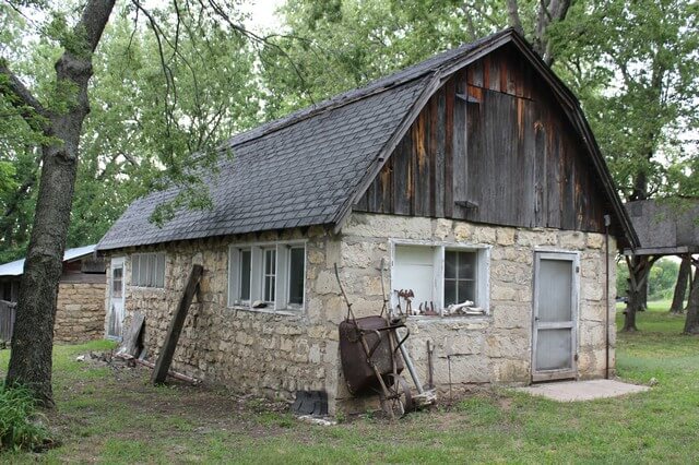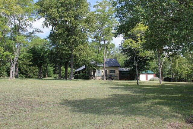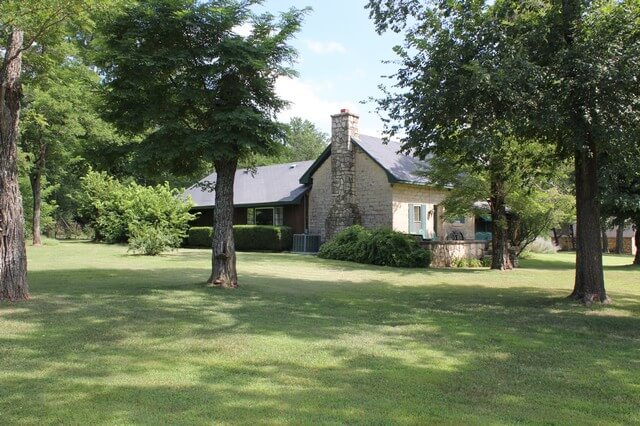 IMPROVEMENTS: You will be amazed at the character and quality of this 3 Bedroom 2 bath historic limestone home originally built in 1850. Many tasteful additions and modern features have been added over the years. There are 1687 Square feet of finished living area that includes a beautiful kitchen with 1950’s Geneva metal cabinets, a formal dining area, family room with a wood burning limestone fireplace that was added in the 1930’s, and a large laundry room and storage room. The master bedroom was the original “bunk room”. It has a nice master bath and a beautiful limestone wall. The massive limestone front porch was added in the 1930’s, as was the outdoor limestone fireplace/grill. The flat stone around the top of the porch came from the old El Dorado High School. The house has central heat and air and a propane tank that is only hooked up to the stove for cooking, everything else is electric. The two limestone barns were built in the 1940’s by German POW’s. Their dimensions are 35′ x 16′ and 42′ x 19′. There is a 36′ x 24′ 3 car metal building added in 2012 and a carport.