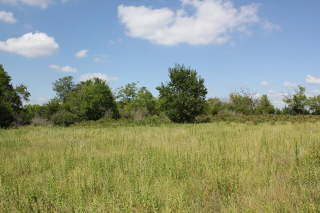 LAND & WILDLIFE: This 76.8 acre tract of land offers a great combination of agriculture and recreation. The terrain is rolling and has several areas of heavy timber. The property has been leased for cattle grazing in the past, but no cattle have been placed on the property this year. The native bluestem pasture is mostly in excellent condition, providing good quality cattle grazing and excellent bedding areas for wildlife. There are currently several resident whitetail deer and wild turkey on the property. The pond is centrally located and attracts waterfowl.