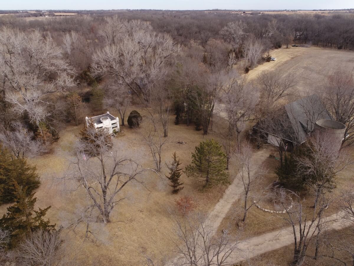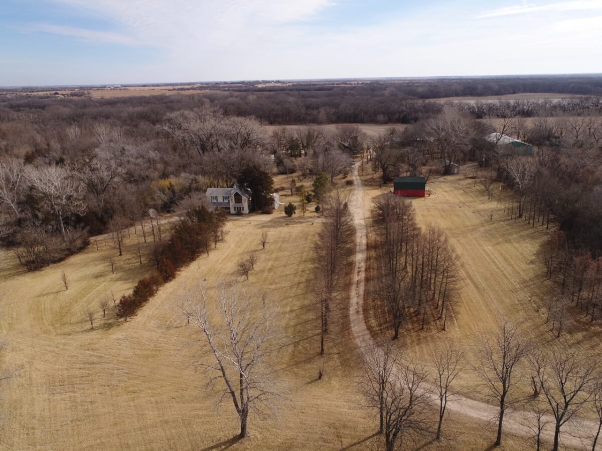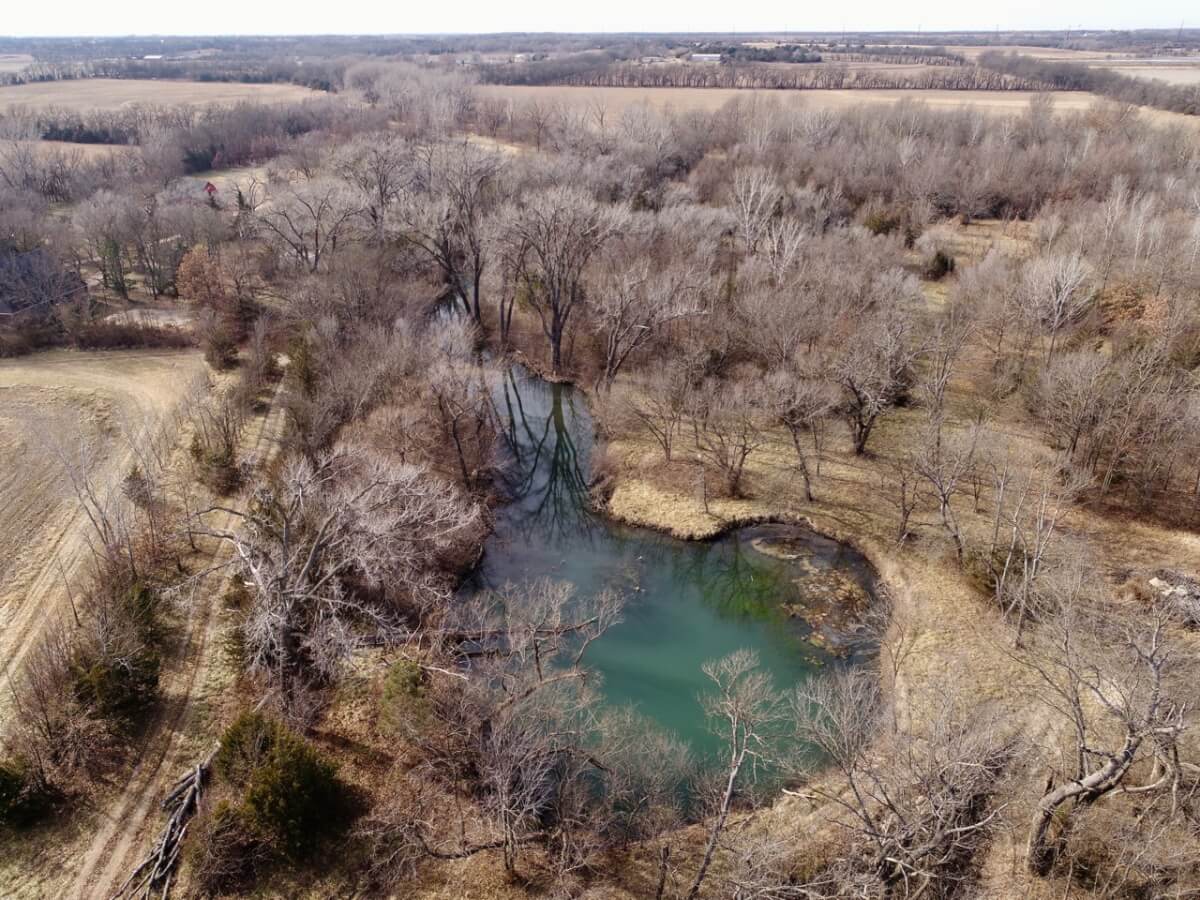 PROPERTY DESCRIPTION: 160+- acres between Douglass and Rose Hill. This beautiful property includes a 2 story farm house featuring 3 heating and cooling zones, small guest house, a 120′ x 54′ Morton Building, a large Great Barn with concrete floor, swimming pool, and several other garages and misc. utility buildings. This property is set up perfect for entertaining, a corporate retreat, or venue. Unlimited water is supplied by multiple wells, including an artesian well that constantly runs 25-50 gallons per minute through waterscape beside the farm house, into a 1 1/2 acre pond, then into 8 mile creek. The water is truly like nothing you’ve ever seen. Land features include tillable farm ground, native Flint Hills hay meadow, over 3000 native and planted trees, 1/4 mile of 8 Mile Creek, and abundant wildlife.