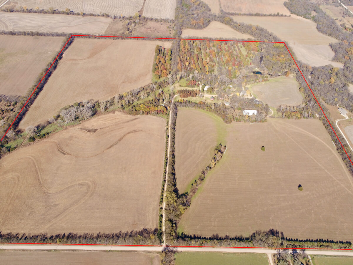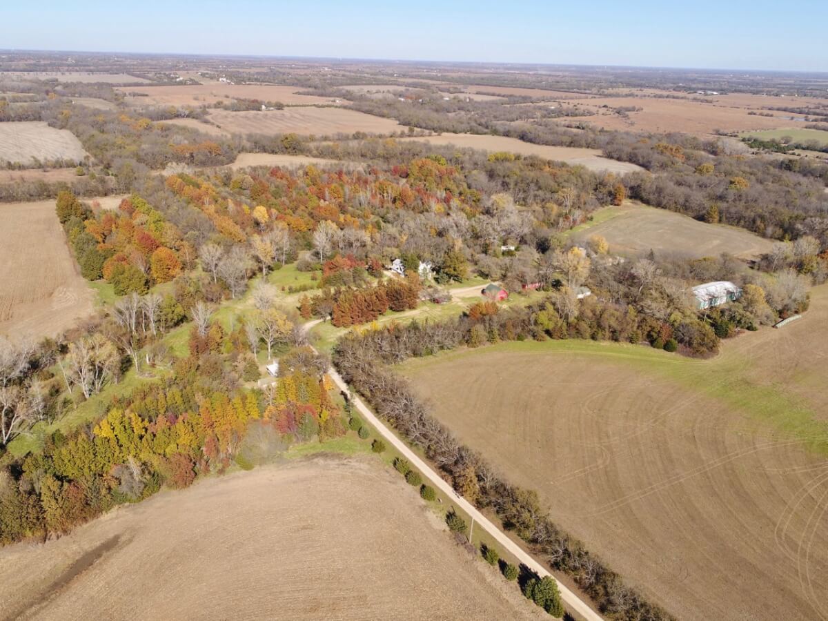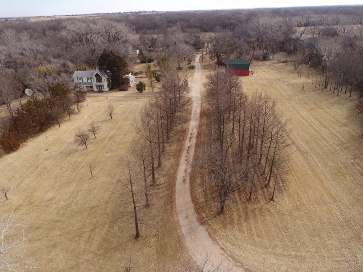 PROPERTY DESCRIPTION: 160+- acres between Douglass and Rose Hill. This beautiful property includes a 2 story farm house featuring 3 heating and cooling zones, small guest house, a 120′ x 54′ Morton Building, a large Great Barn with concrete floor, swimming pool, and several other garages and misc. utility buildings. This property is set up perfect for entertaining, a corporate retreat, or venue. Unlimited water is supplied by multiple wells, including an artesian well that constantly runs 25-50 gallons per minute through waterscape beside the farm house, into a 1 1/2 acre pond, then into 8 mile creek. The water is truly like nothing you’ve ever seen. Land features include tillable farm ground, native Flint Hills hay meadow, over 3000 native and planted trees, 1/4 mile of 8 Mile Creek, and abundant wildlife.