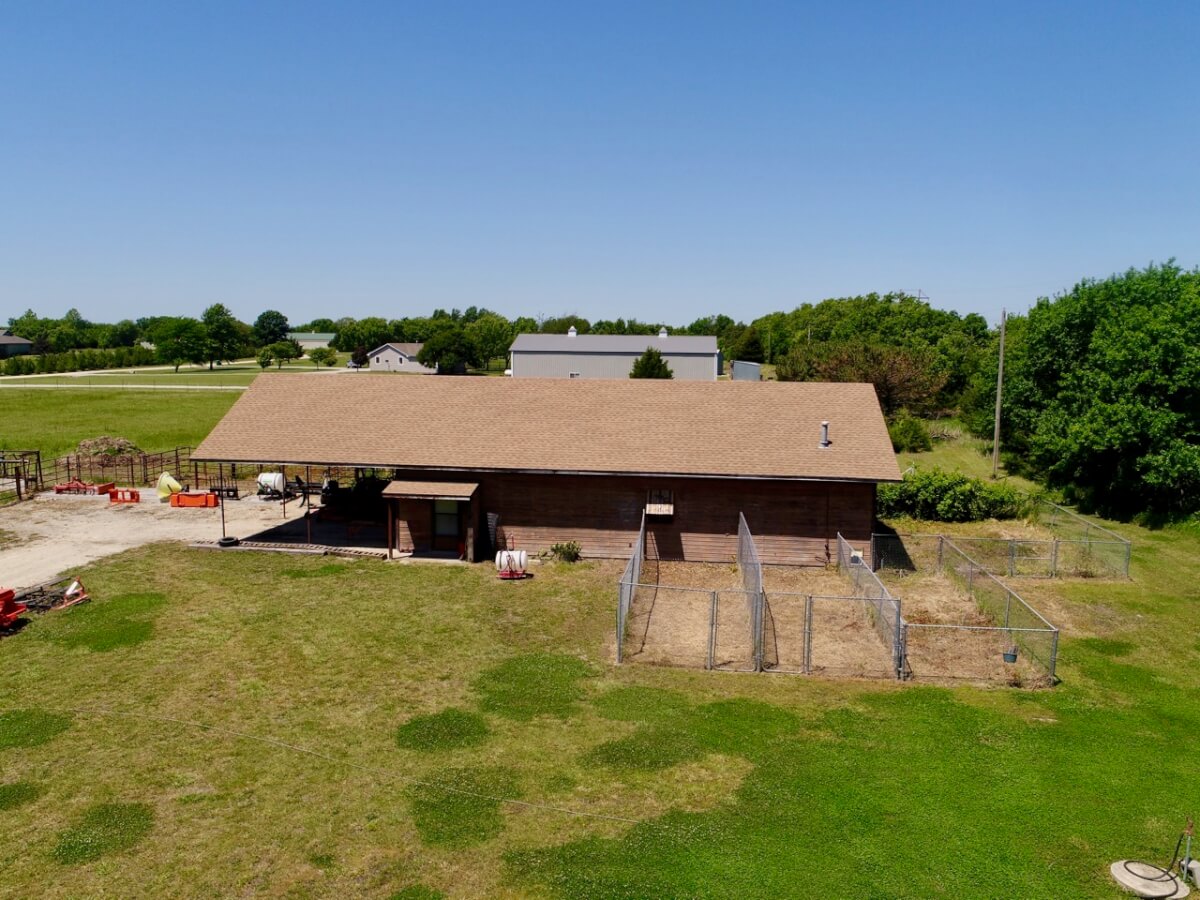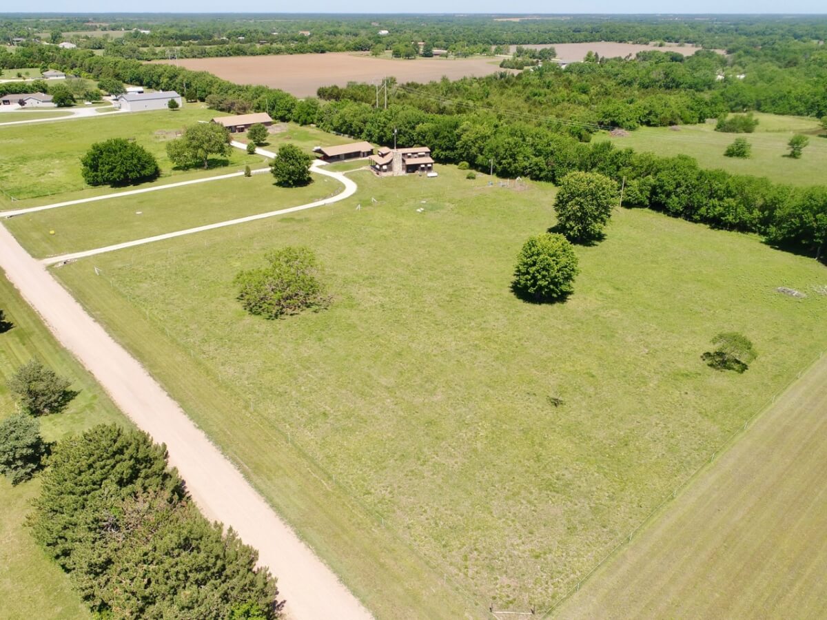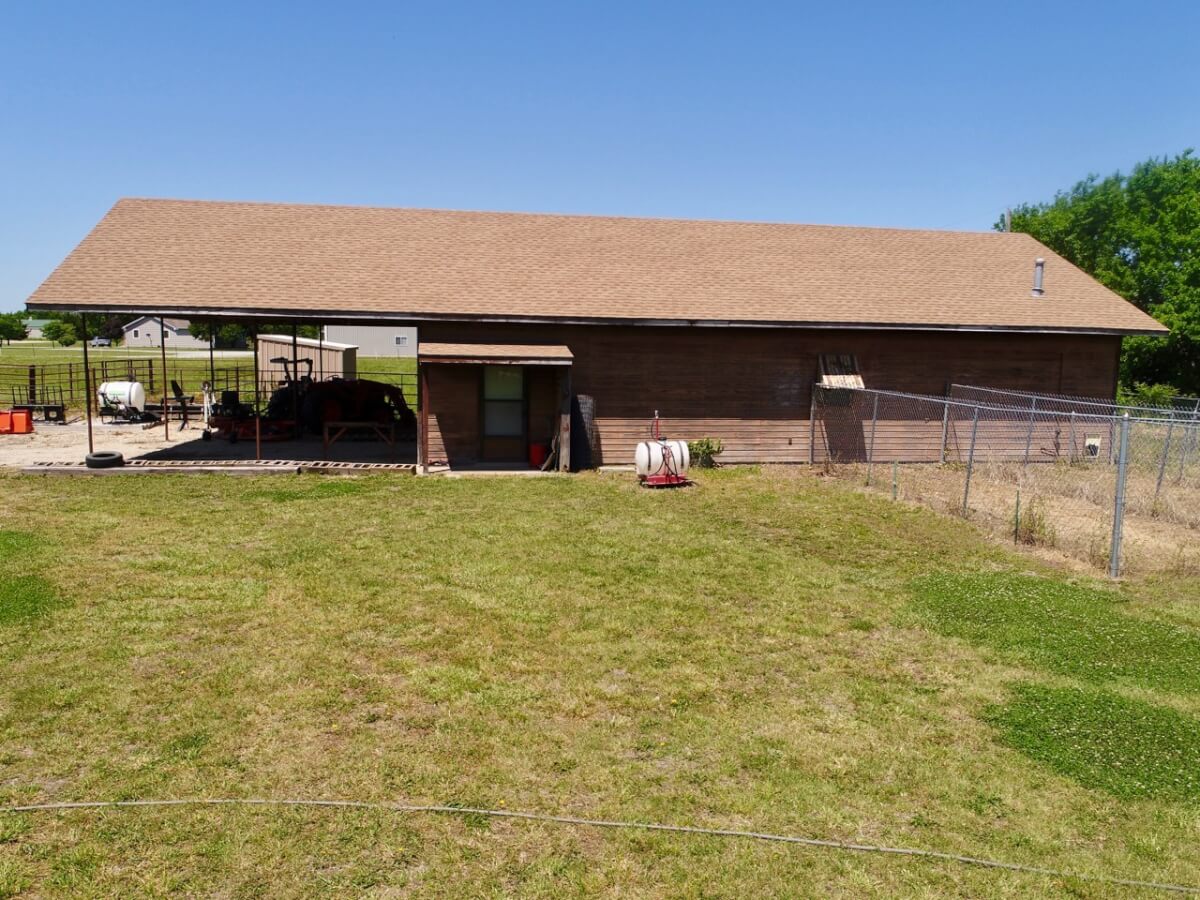 PROPERTY DESCRIPTION: Great home on 8 acres in rural Butler County Kansas near Towanda! This 3 bedroom 2 bath home has 2188 square feet of above ground living area, and an additional 659 square feet in the basement. The home was built in 1994. A vaulted ceiling and stone wood burning fireplace are features of the main floor living area. Exterior amenities include two great buildings, a 50′ x 30′ shop with a 30′ x 20′ carport built in 1990, and a 36′ x 26′ garage w/ a 26′ x 20′ carport. Other improvements include a loafing shed, pipe livestock pens, and dog runs.