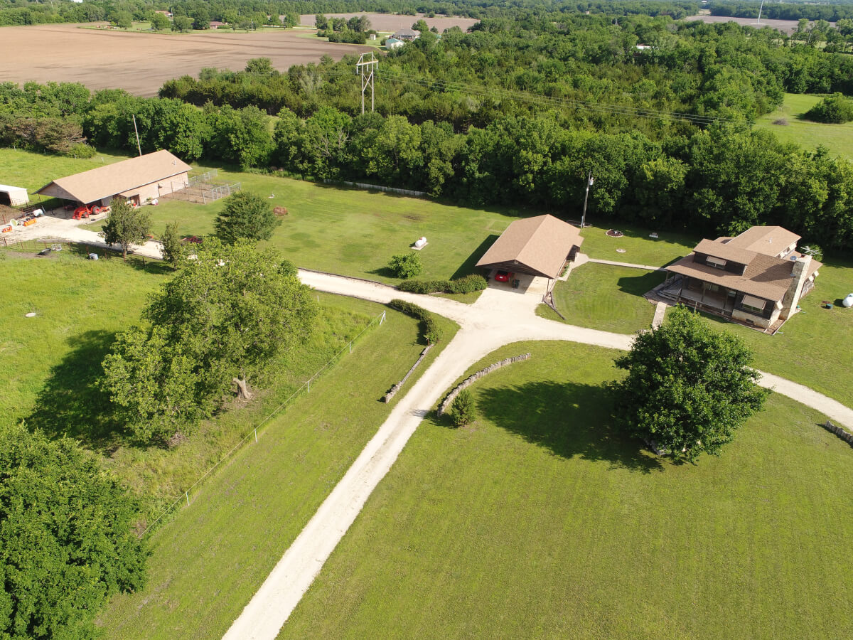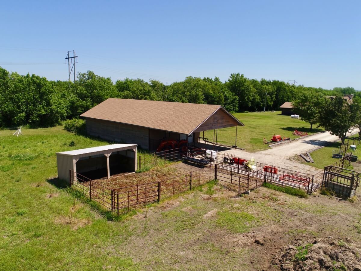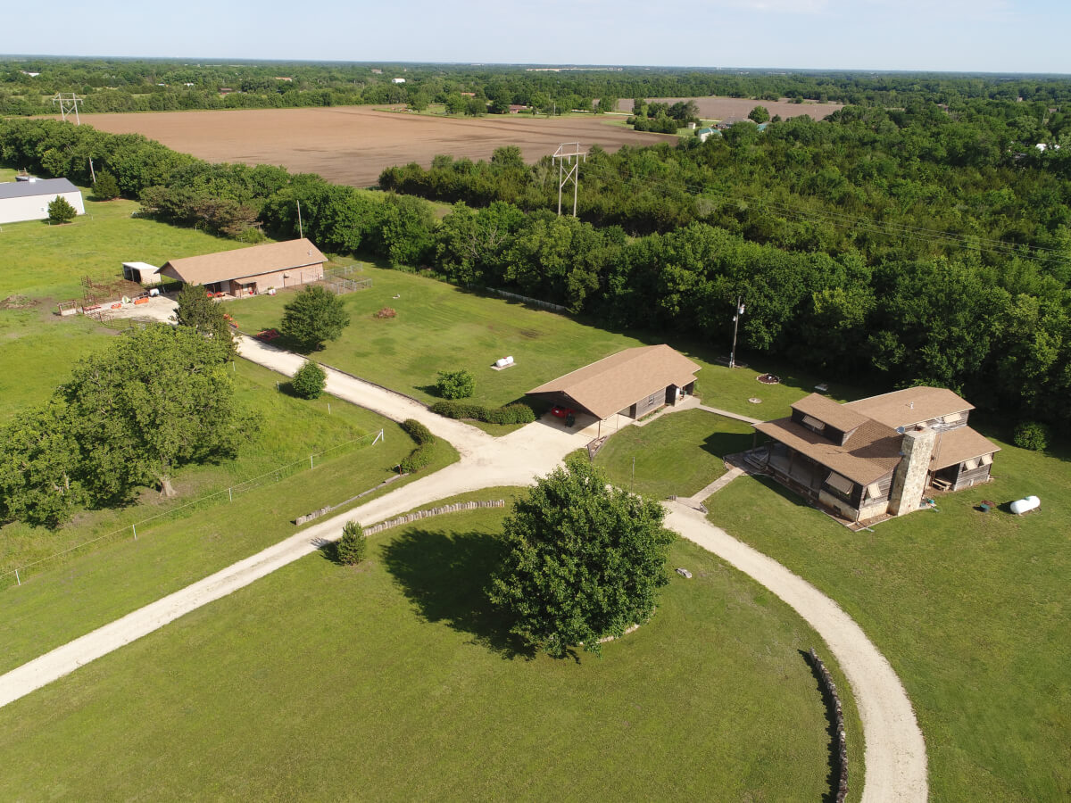 PROPERTY DESCRIPTION: Great home on 8 acres in rural Butler County Kansas near Towanda! This 3 bedroom 2 bath home has 2188 square feet of above ground living area, and an additional 659 square feet in the basement. The home was built in 1994. A vaulted ceiling and stone wood burning fireplace are features of the main floor living area. Exterior amenities include two great buildings, a 50′ x 30′ shop with a 30′ x 20′ carport built in 1990, and a 36′ x 26′ garage w/ a 26′ x 20′ carport. Other improvements include a loafing shed, pipe livestock pens, and dog runs.