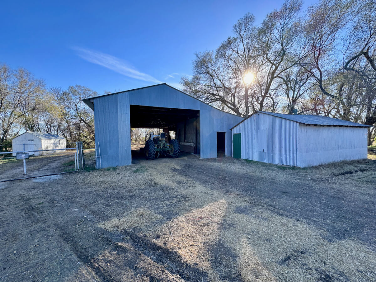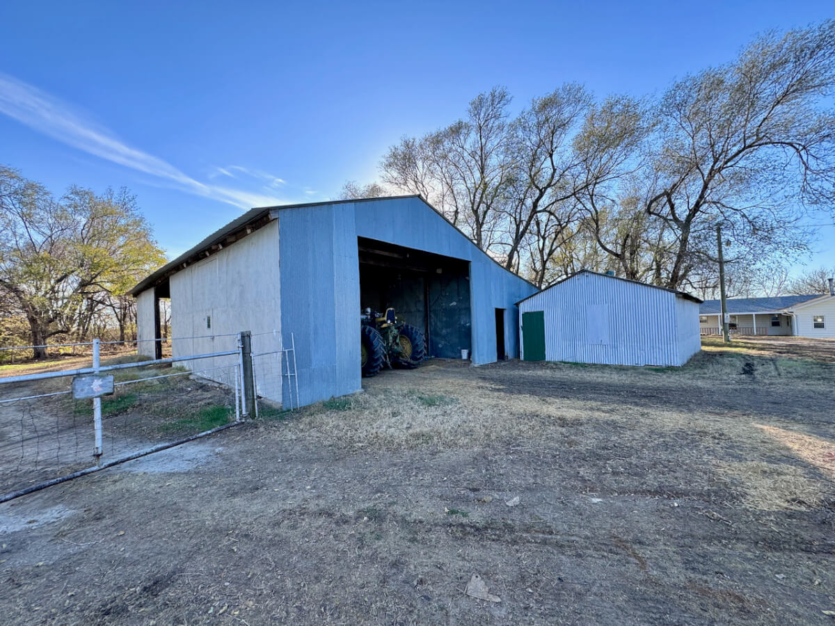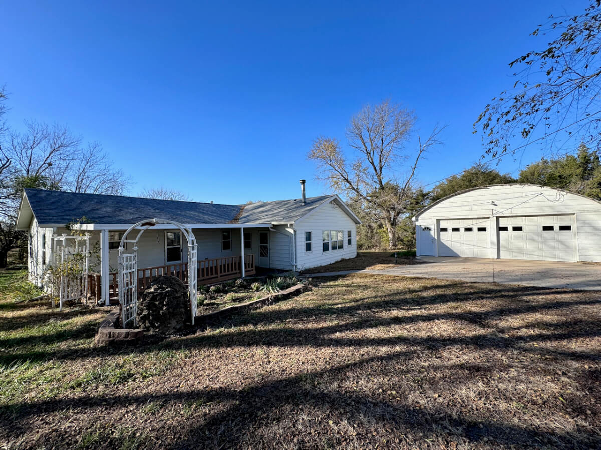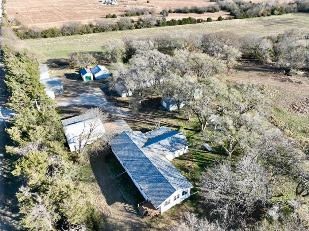 PROPERTY DESCRIPTION: 20+- acres with house and improvements located just east of Flint Hills National Golf Course southeast of Andover Kansas. Home is 4 bed 2 bath offering over 2300 square feet on the main level. The unfinished basement offers extra space. Detached 2 car garage has lean-to for added storage. The home is serviced by rural water, a well provides water to outdoor hydrants. Numerous additional outbuilding will provide ample space for your equipment and projects. The west pasture has most recently been utilized as hay meadow. The east field was previously in alfalfa. This property is in a great location, just minutes from Andover, Rose Hill, and Augusta.