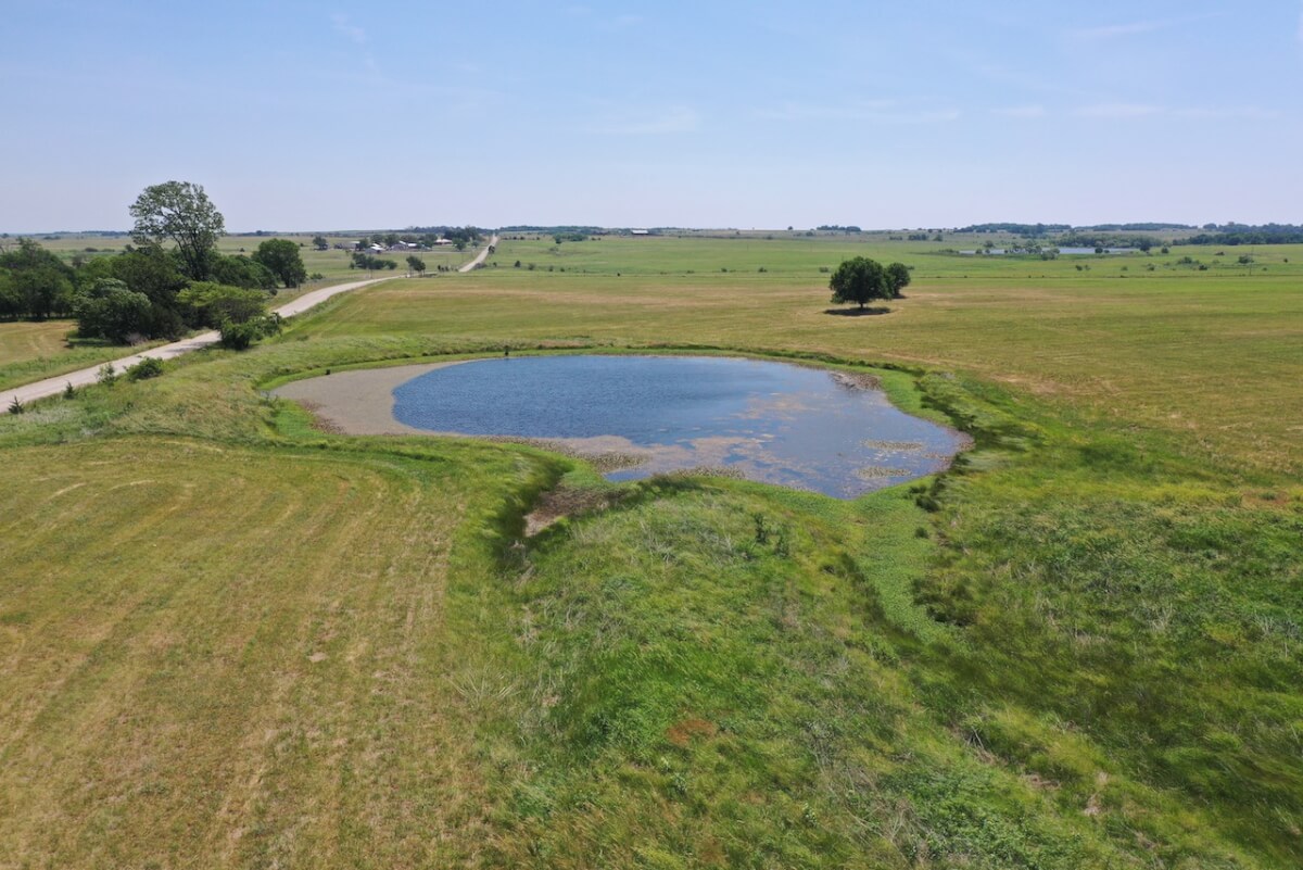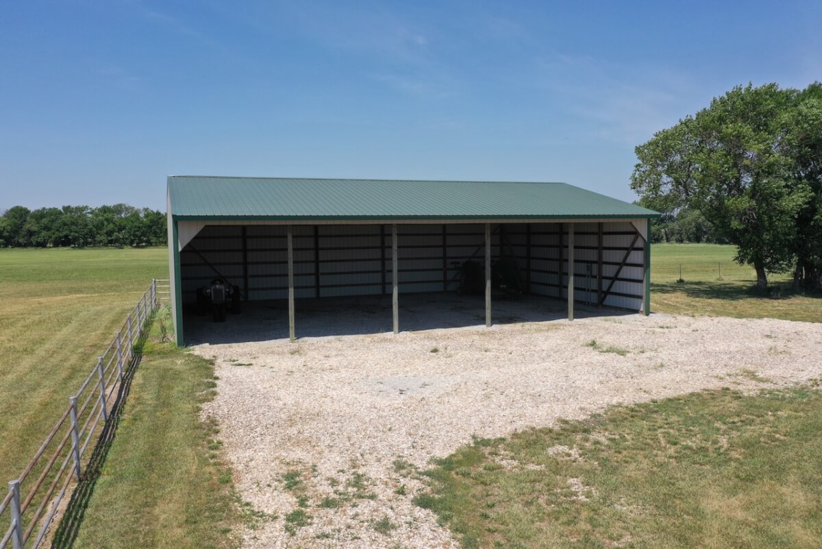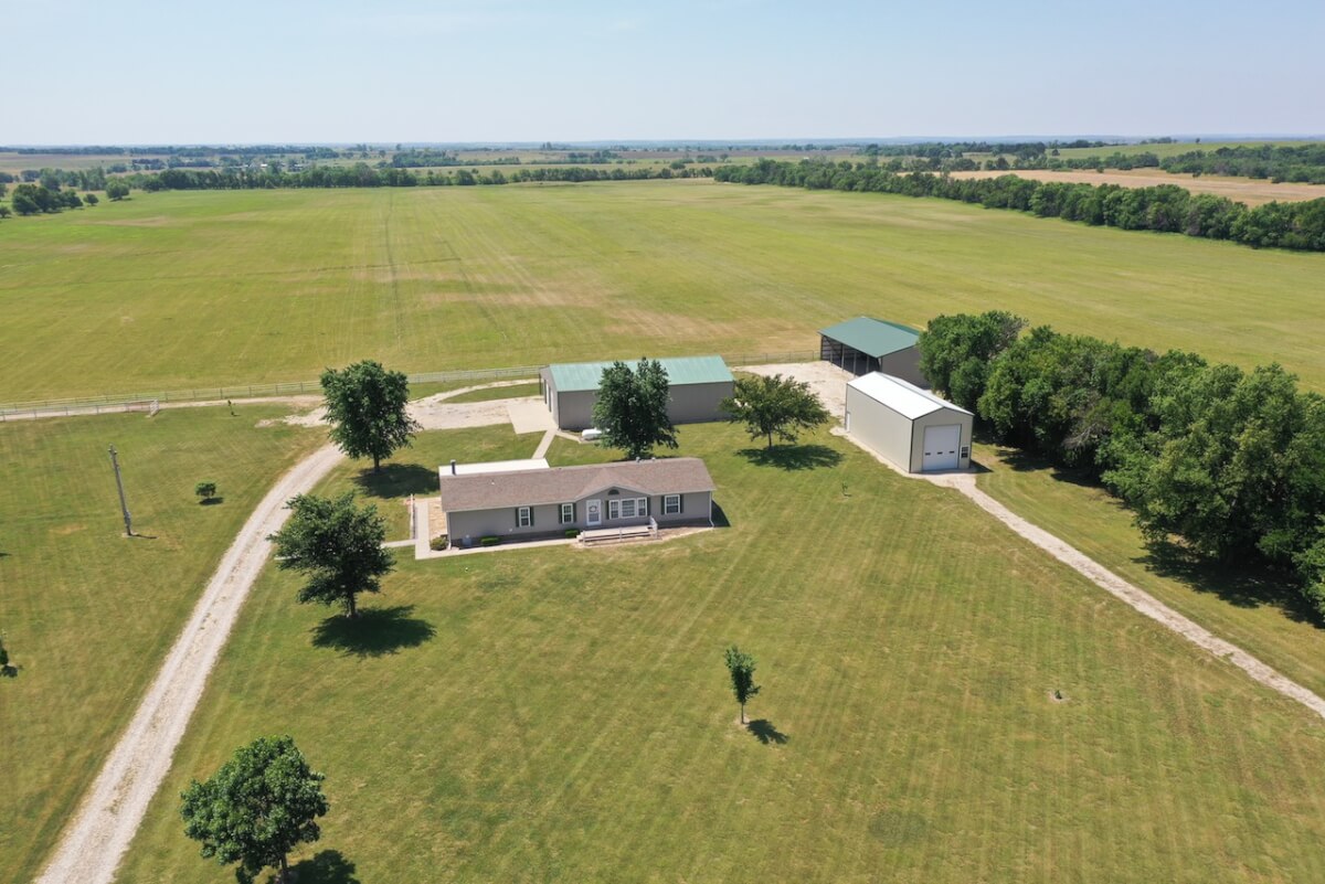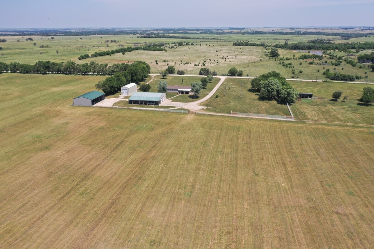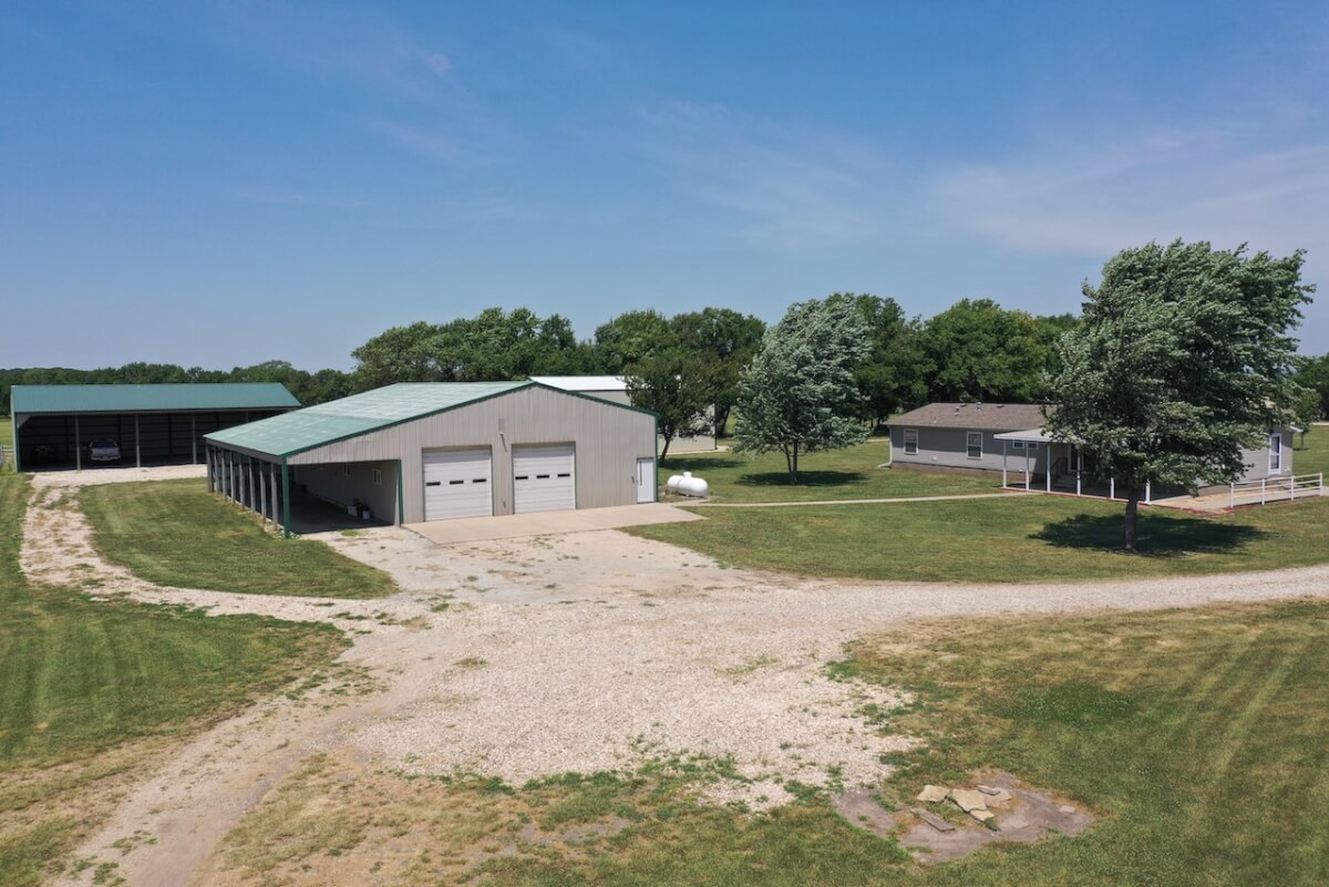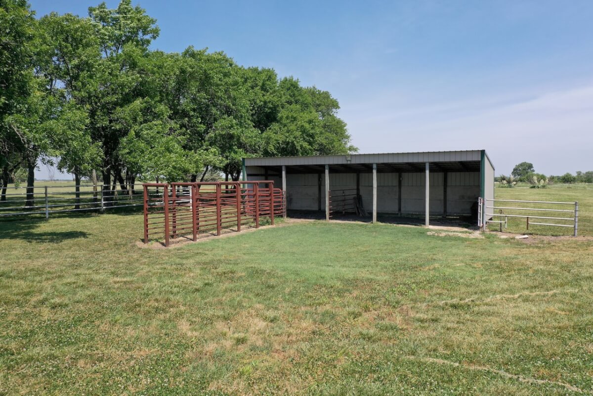 PROPERTY DESCRIPTION: Immaculate house, barns, and land southeast of Eureka in Greenwood County, Kansas. The main portion of the land is cross fenced into two different grazing units. The east unit has two ponds, one pond in the west. Both have a combination of quality native and cool season grasses, well suited for year round grazing. The property has been cut for hay in recent years by the current owner. By the house is a smaller livestock holding area with a 15′ x 40′ loafing shed built in 1998 for shelter. Water is run to this location.