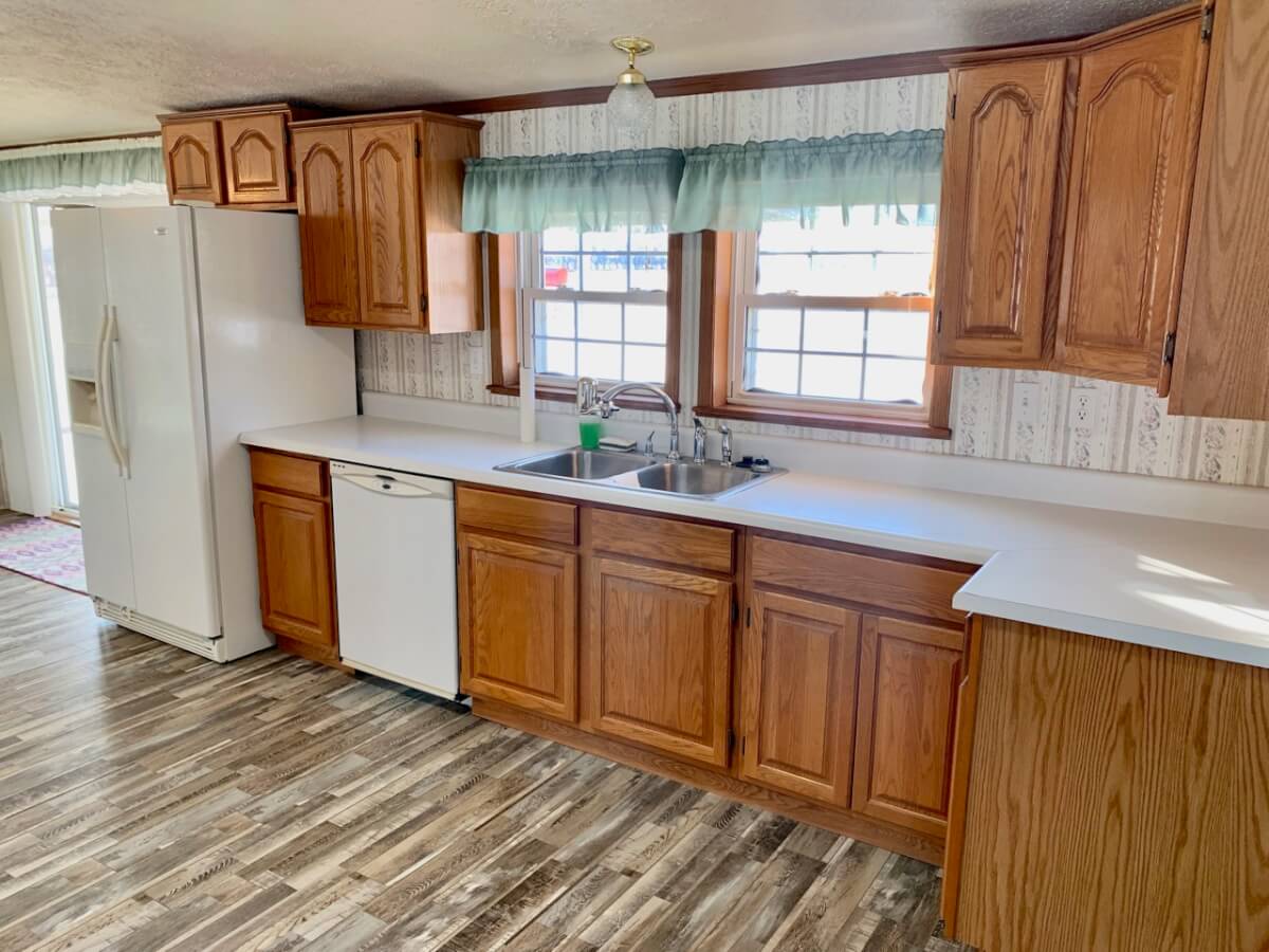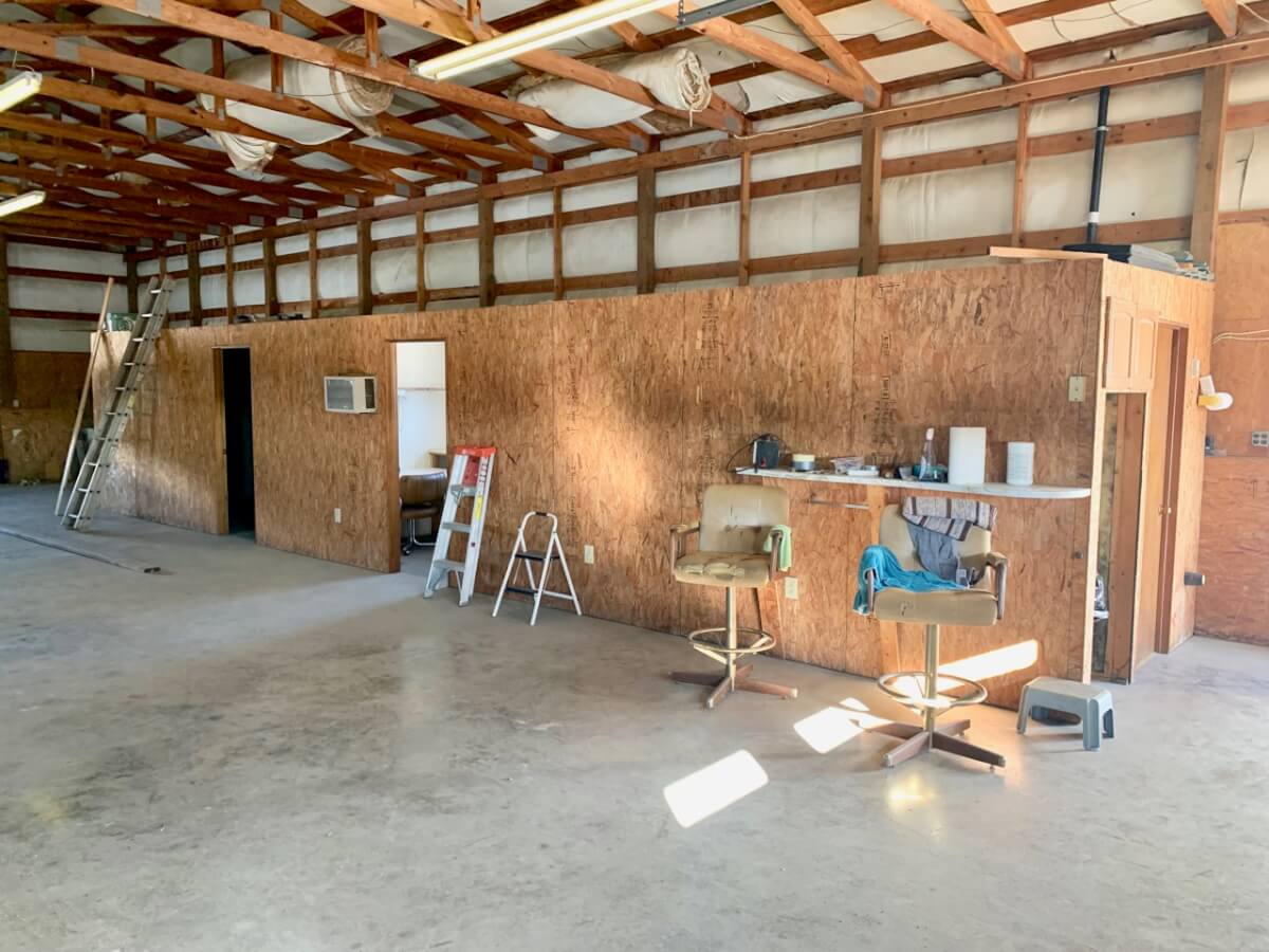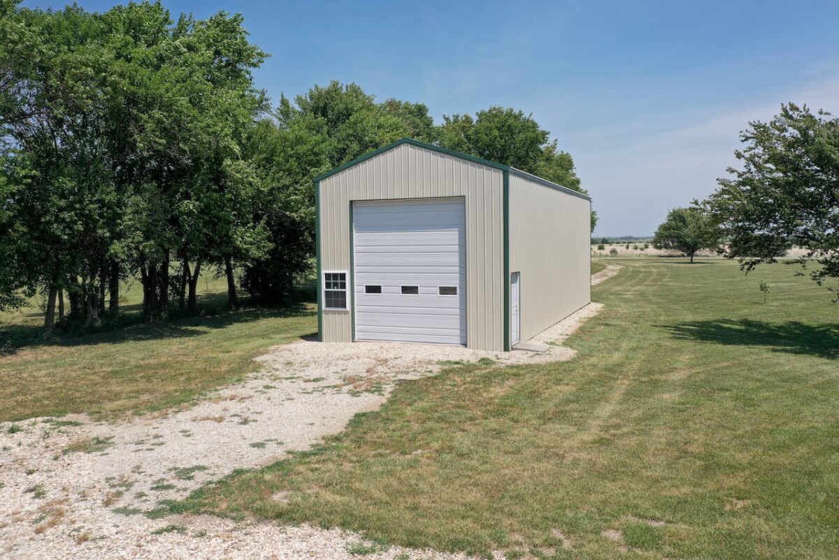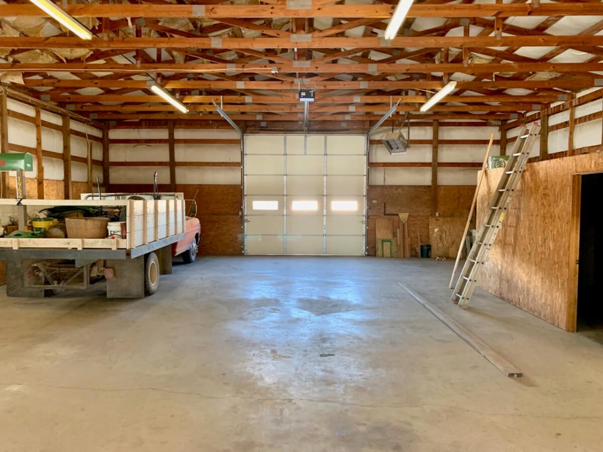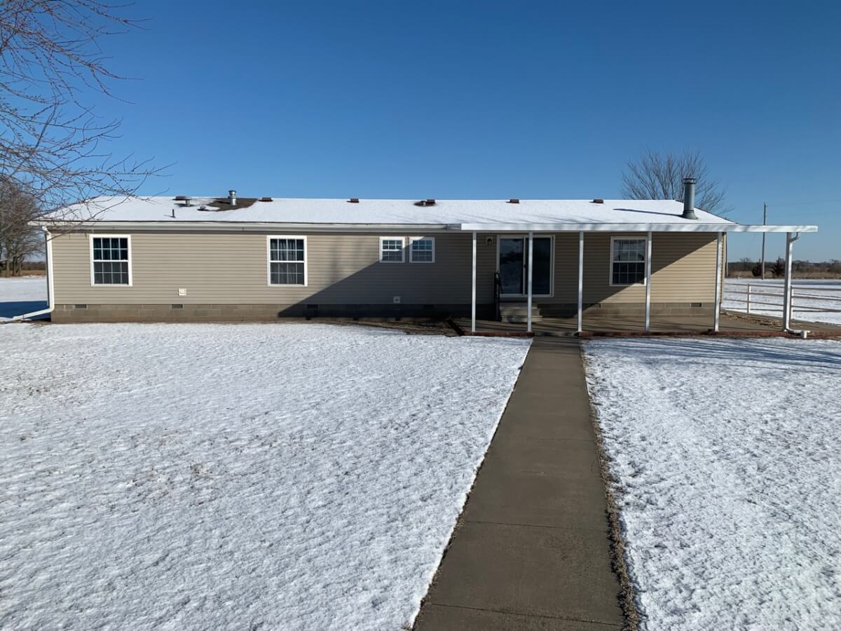 IMPROVEMENTS: The double wide manufactured home was built in 1996 and has 1836 square feet. This 3 bedroom two bath home has two living rooms, a dining area, and a wood burning fireplace. A large kitchen is open to both the dining room area and the living room w/ fireplace. In the master bedroom there re two closets and a master bath with separate tub & shower. The house sits on a permanent foundation and has a front porch and a covered back patio. Other buildings on the property include a 64′ x 40′ metal building w/ concrete floor, heat, a bathroom, and an additional 15′ lean-to all along the south side of the building. In addition, there is a 60′ x 40′ pole barn open on one side for equipment storage, and another building that is 50′ x 25′ with a concrete floor and (2) 14′ overhead doors adequate for RV parking.
