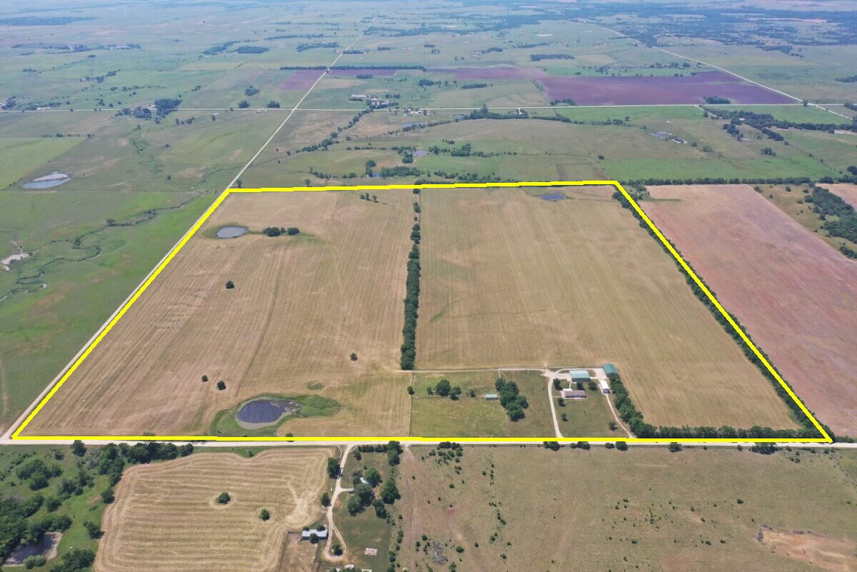 LAND LOCATION: From Eureka 3 miles east on HWY 54 to 150th, continue 2 miles east to V rd, south 1 mile to 140th, east 1/2 mile to the property.
