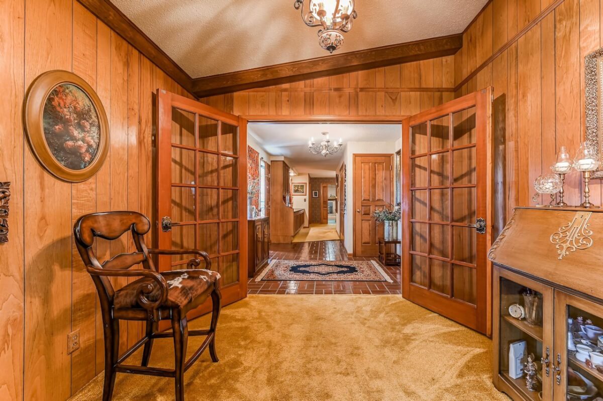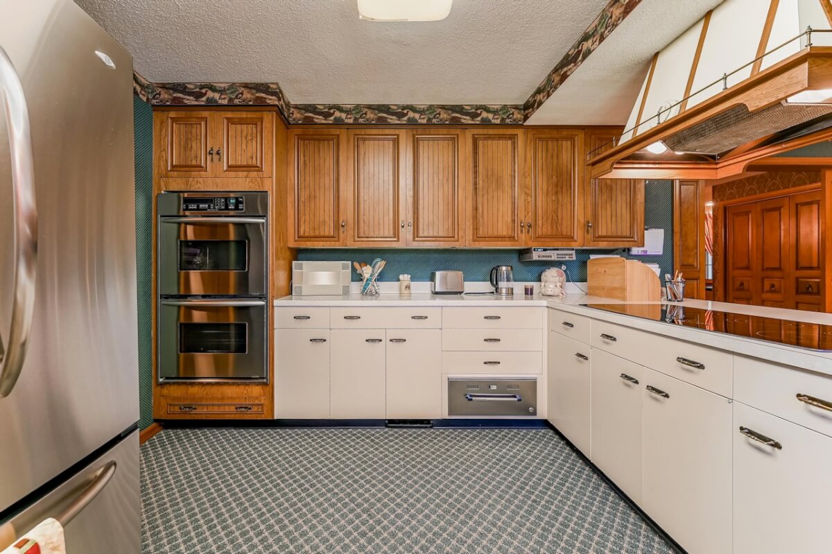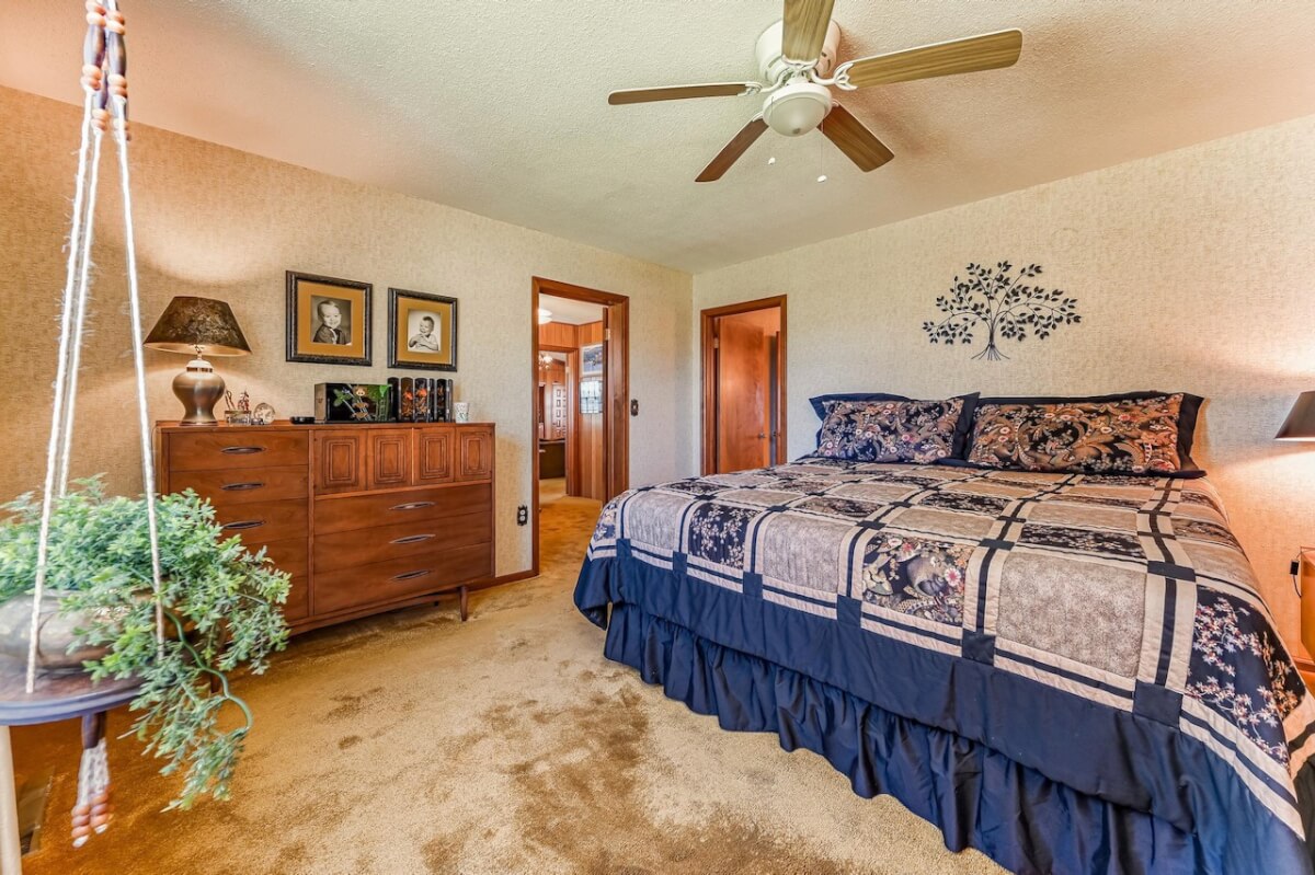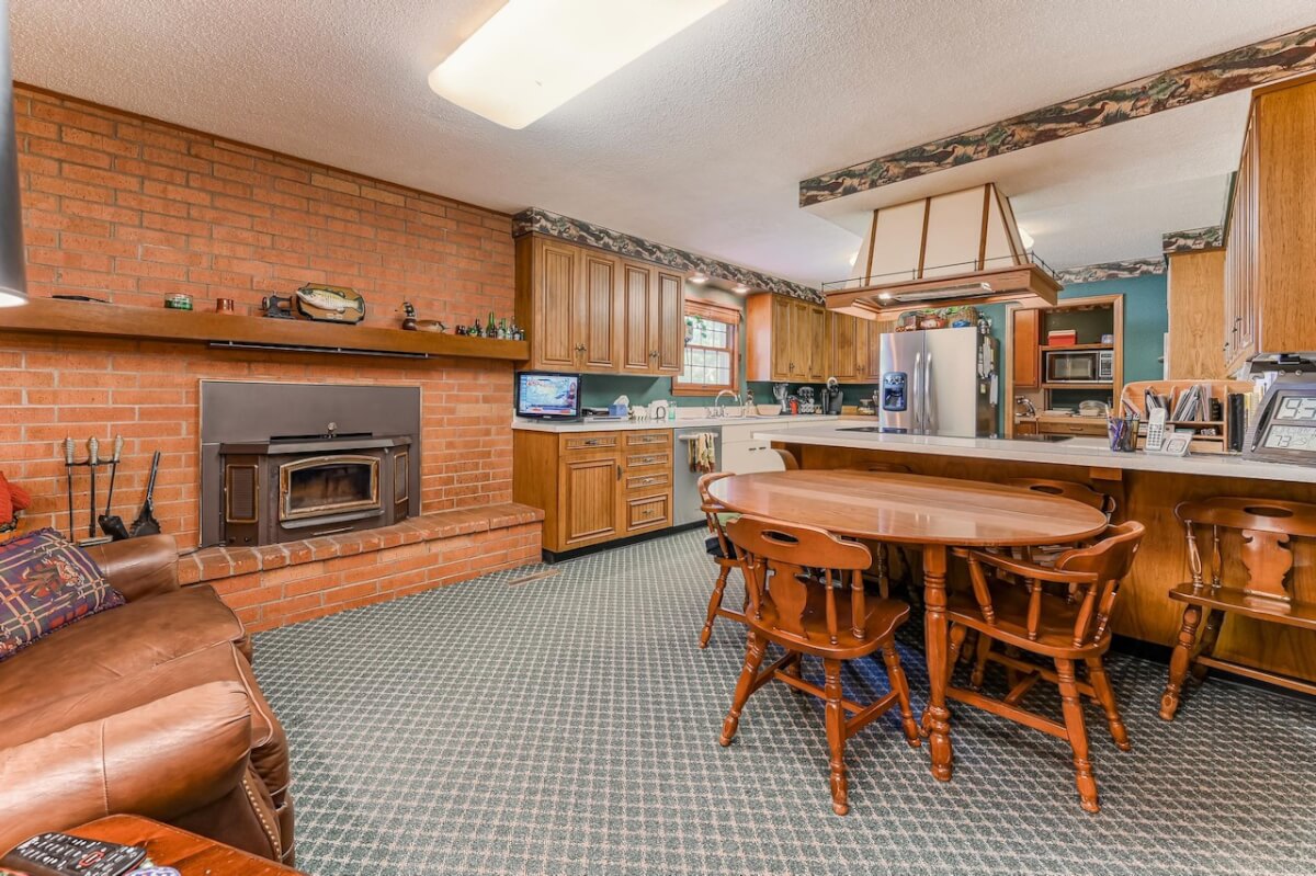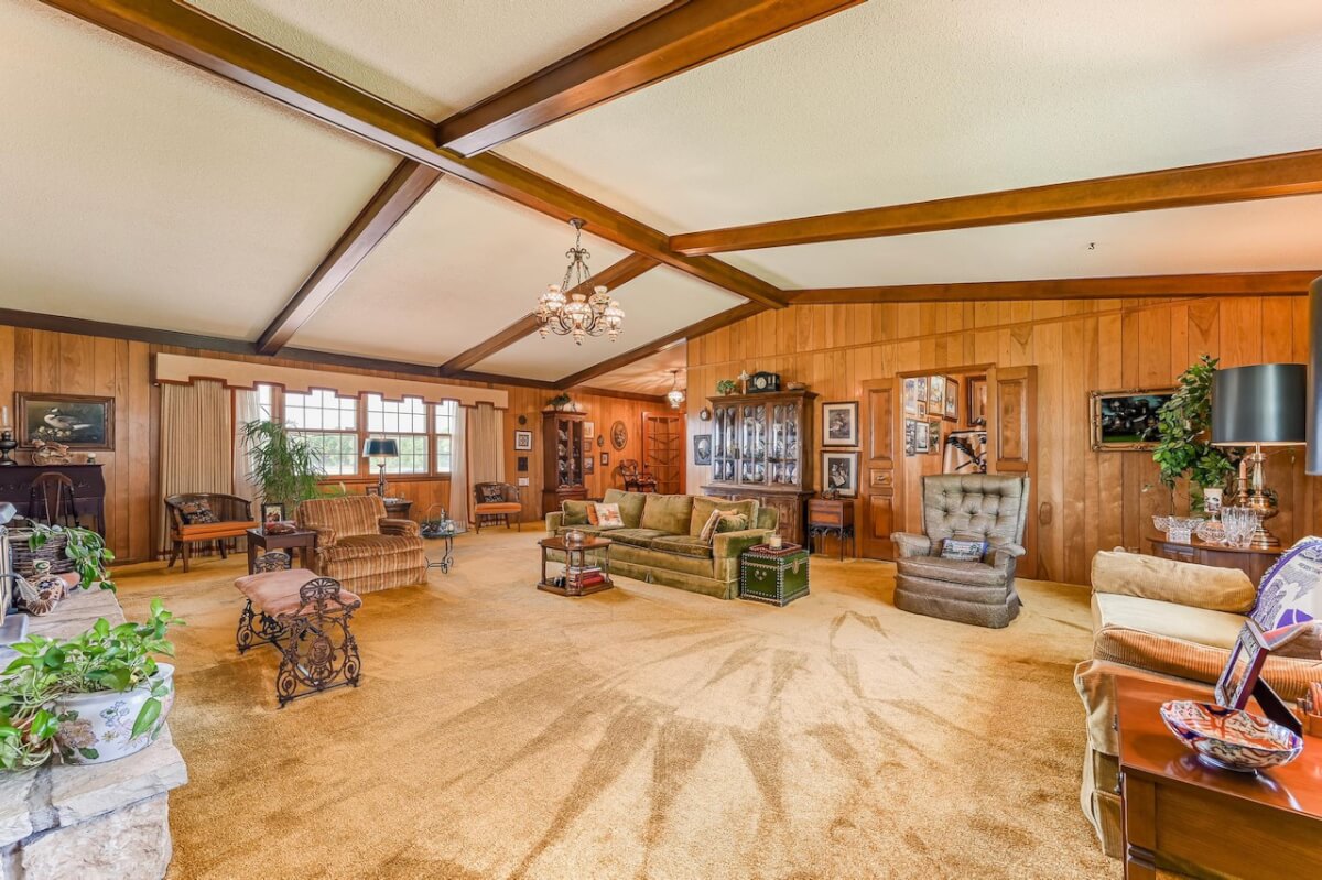 PROPERTY DESCRIPTION: Beautiful home on 80+- acres located southeast of Augusta in Butler County, Kansas. Land features include approximately 27 acres of tillable ground, fenced pasture area for livestock or horses, and smaller pens. A 75′ x 50′ shop building offers excellent storage and an office. The 84 x 54 building is the perfect place to store equipment and hay. Trees and habitat in the southern portion of the property offer habitat and cover around the large watershed lake. Approximately 9 acres of water is a part of this property, offering the opportunity for fishing, swimming, and boating! This large 3040 square foot sprawling home has many great classic features including a St. Charles kitchen, 2 fireplace inserts, vaulted ceilings in the living room, and a wet bar. The master bedroom on the main level has a large California closet. Other features include a large oversized finished 2 car attached garage. Home has large unfinished basement providing ample storage with a bonus full bath.