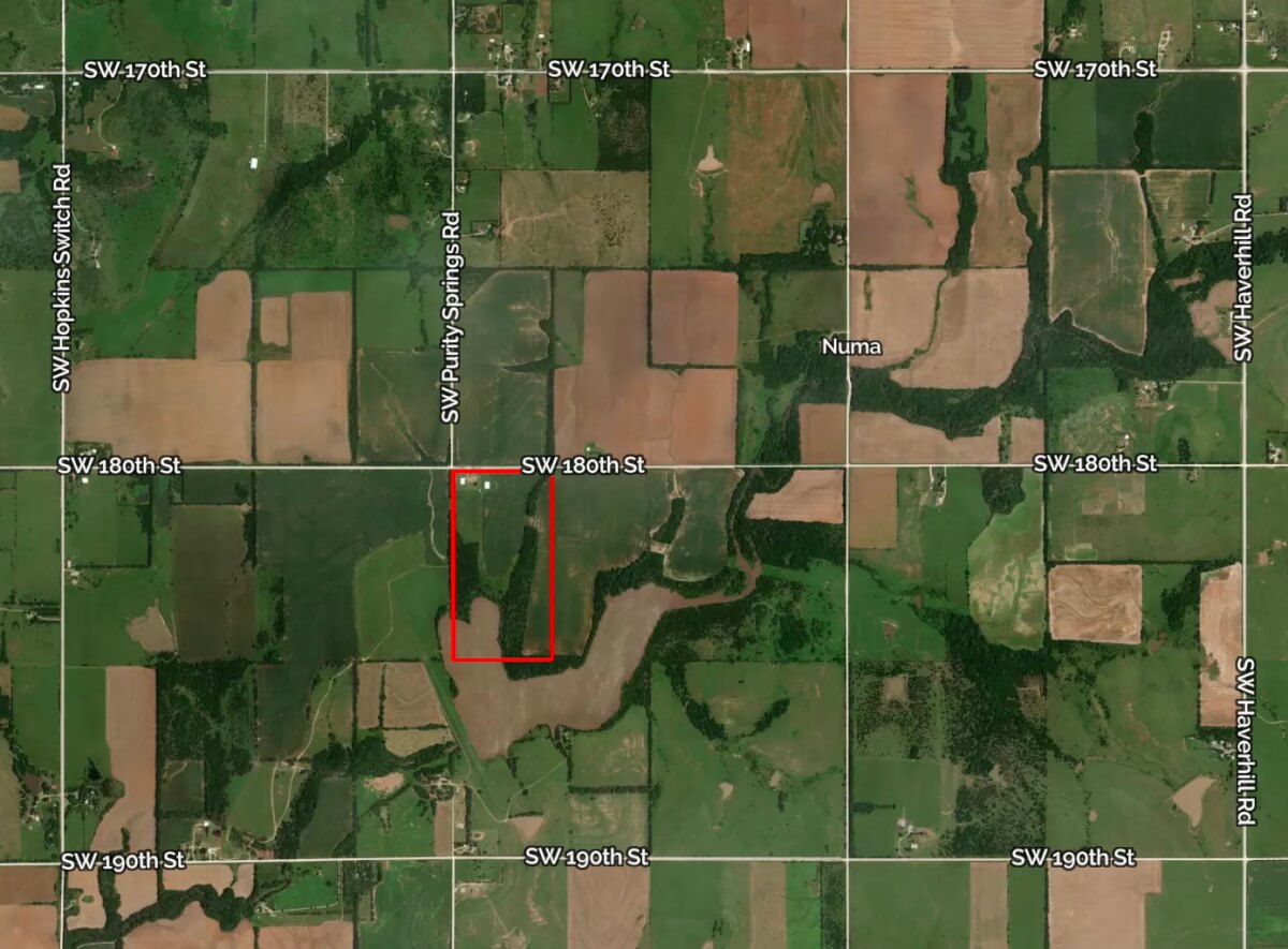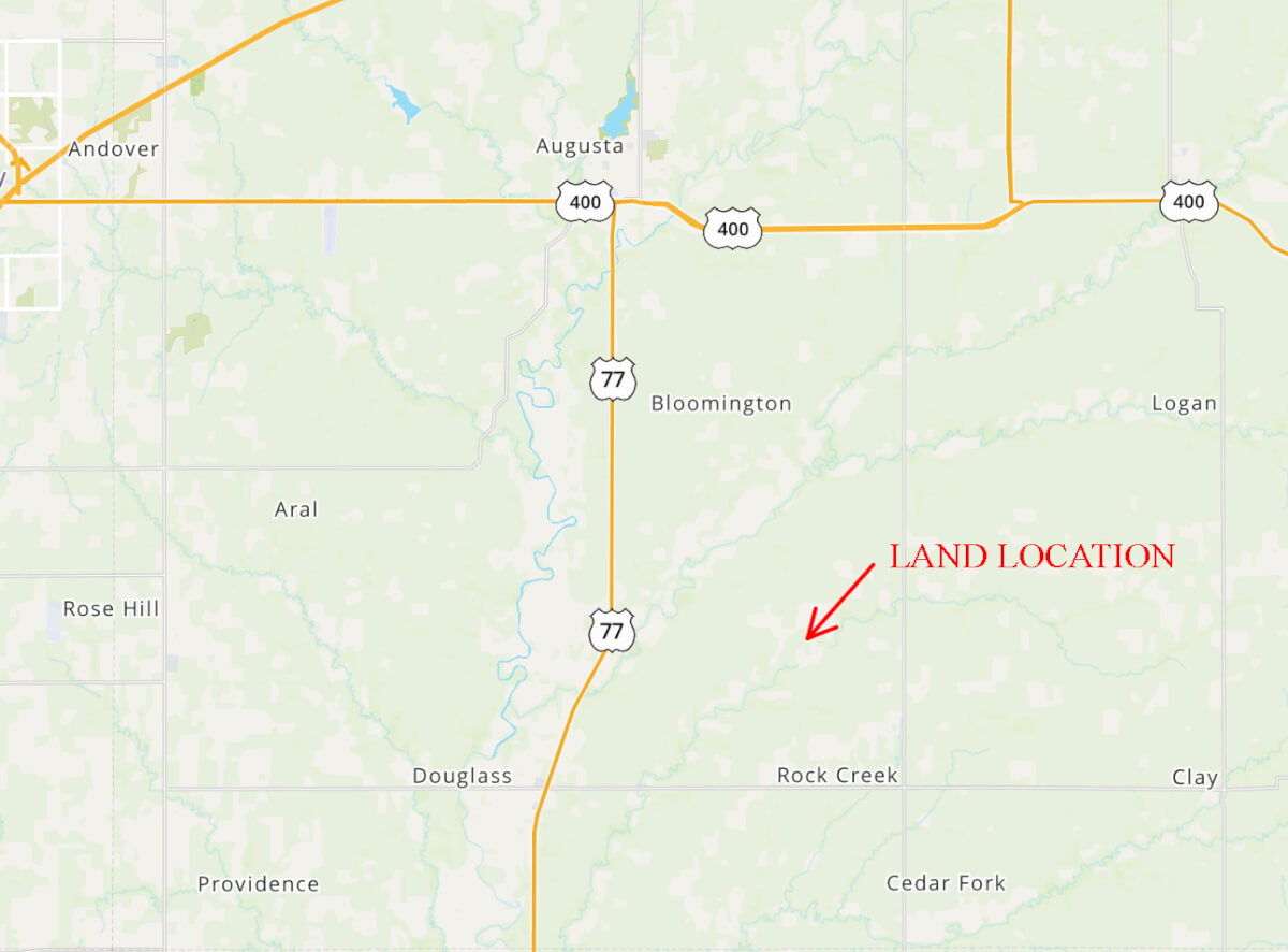 PROPERTY LOCATION: From HWY 54 in Augusta, south on HWY 77 7 miles to 170th, east 3 1/2 miles to SW Purity Springs Rd, south 1 mile to the property.