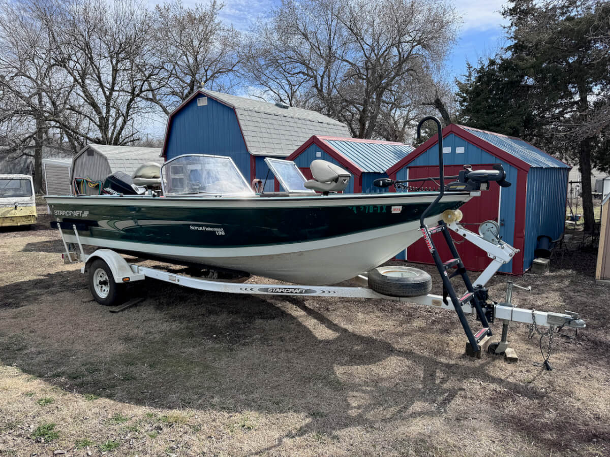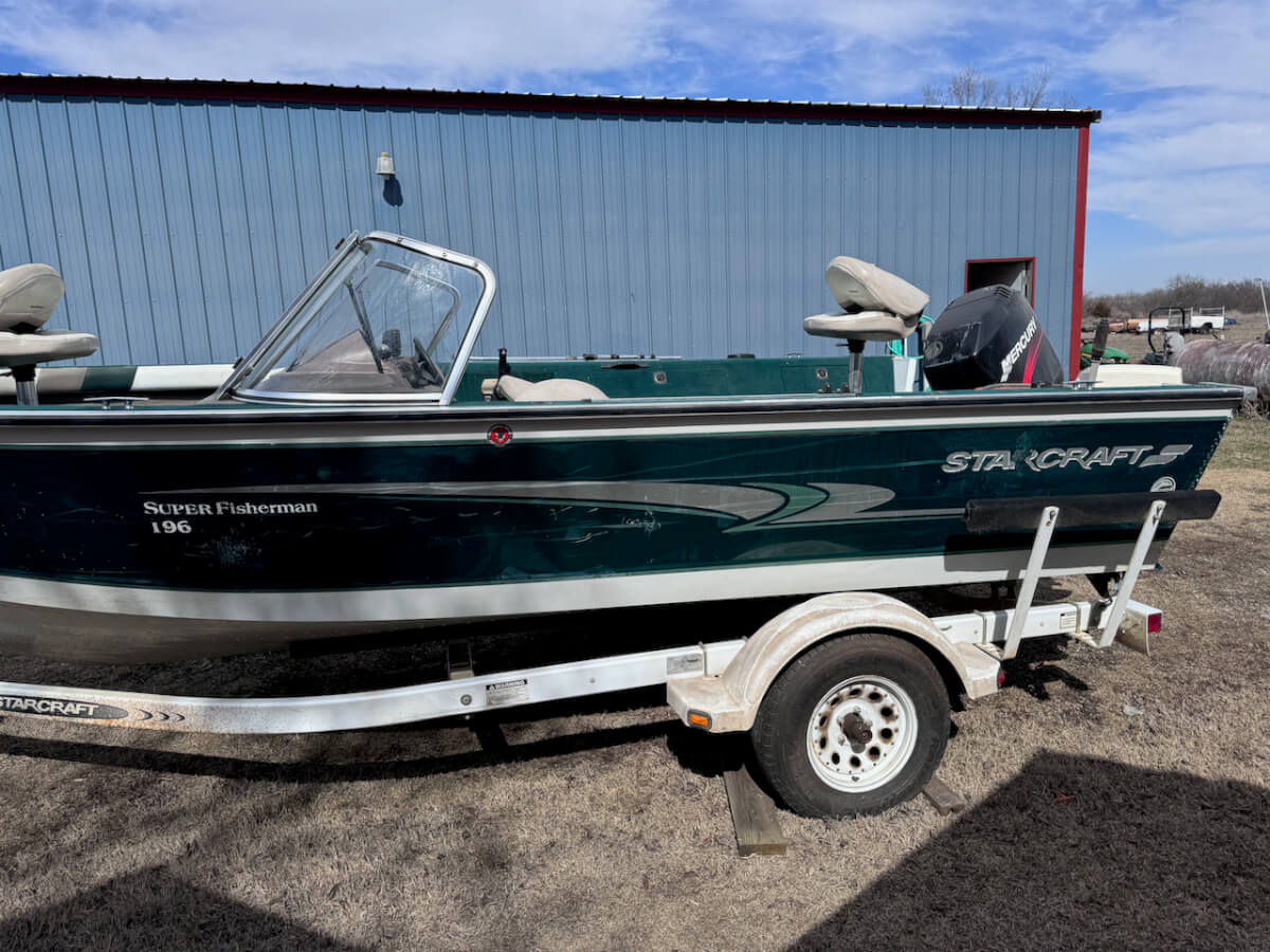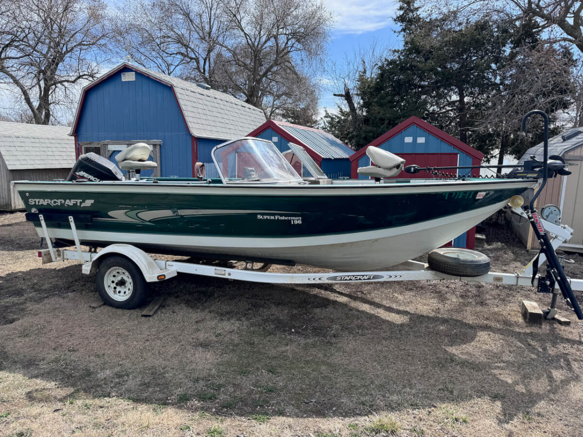 2000 Starcraft Super Fisherman 196, 125hp Mercury Outboard, Johnson 8 Aux Motor, Minn Kota Trolling Motor, Lowrance Hook 5 Fish Finder, 2 Live Wells, on Trailer
